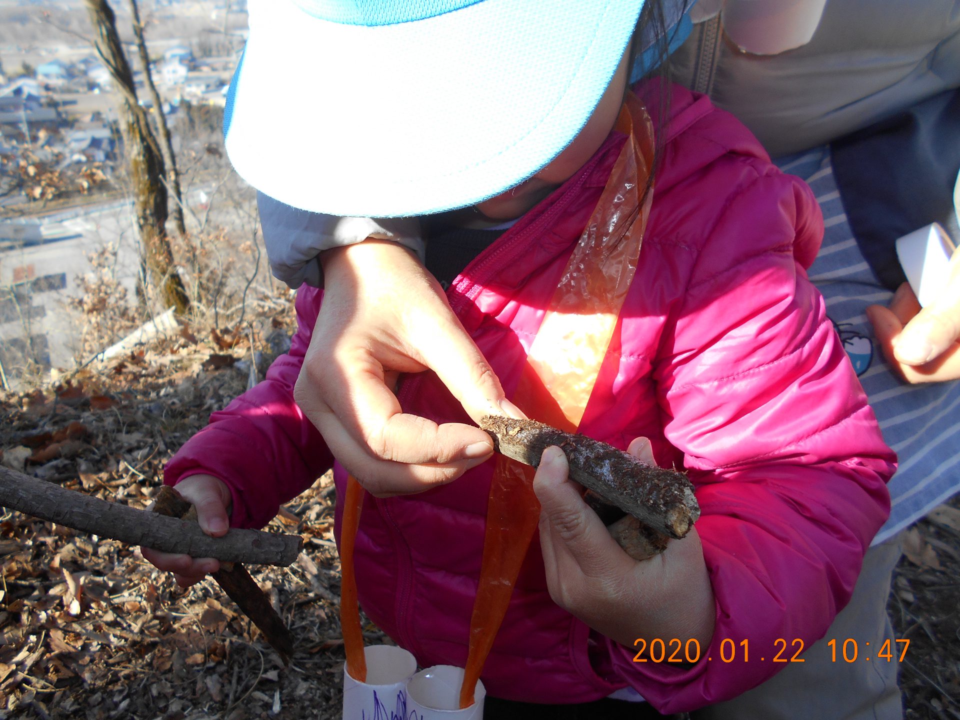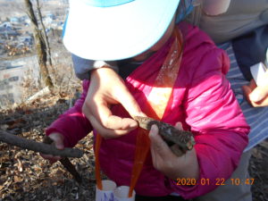 望遠鏡を首から下げて登ります。大好きなどんぐりを探しながら歩きます。
