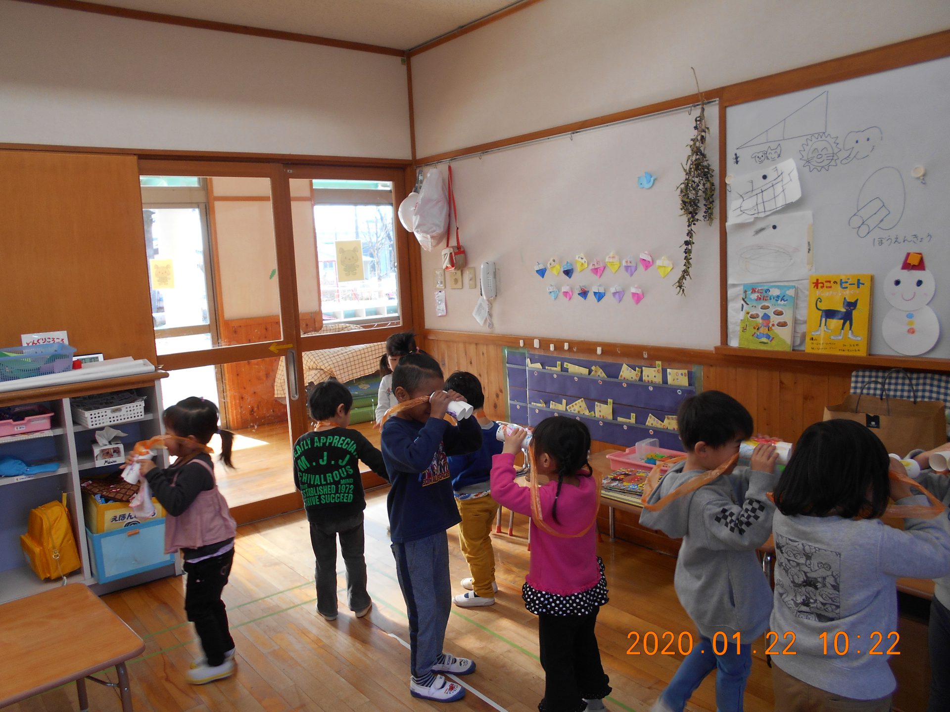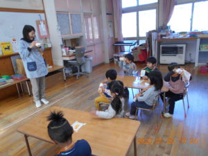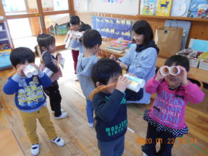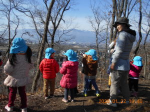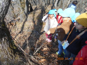 ・自分の望遠鏡を覗いて、山の自然や冬の景色に興味を持ち、友だちと一緒に遊ぶことを楽しむ。
