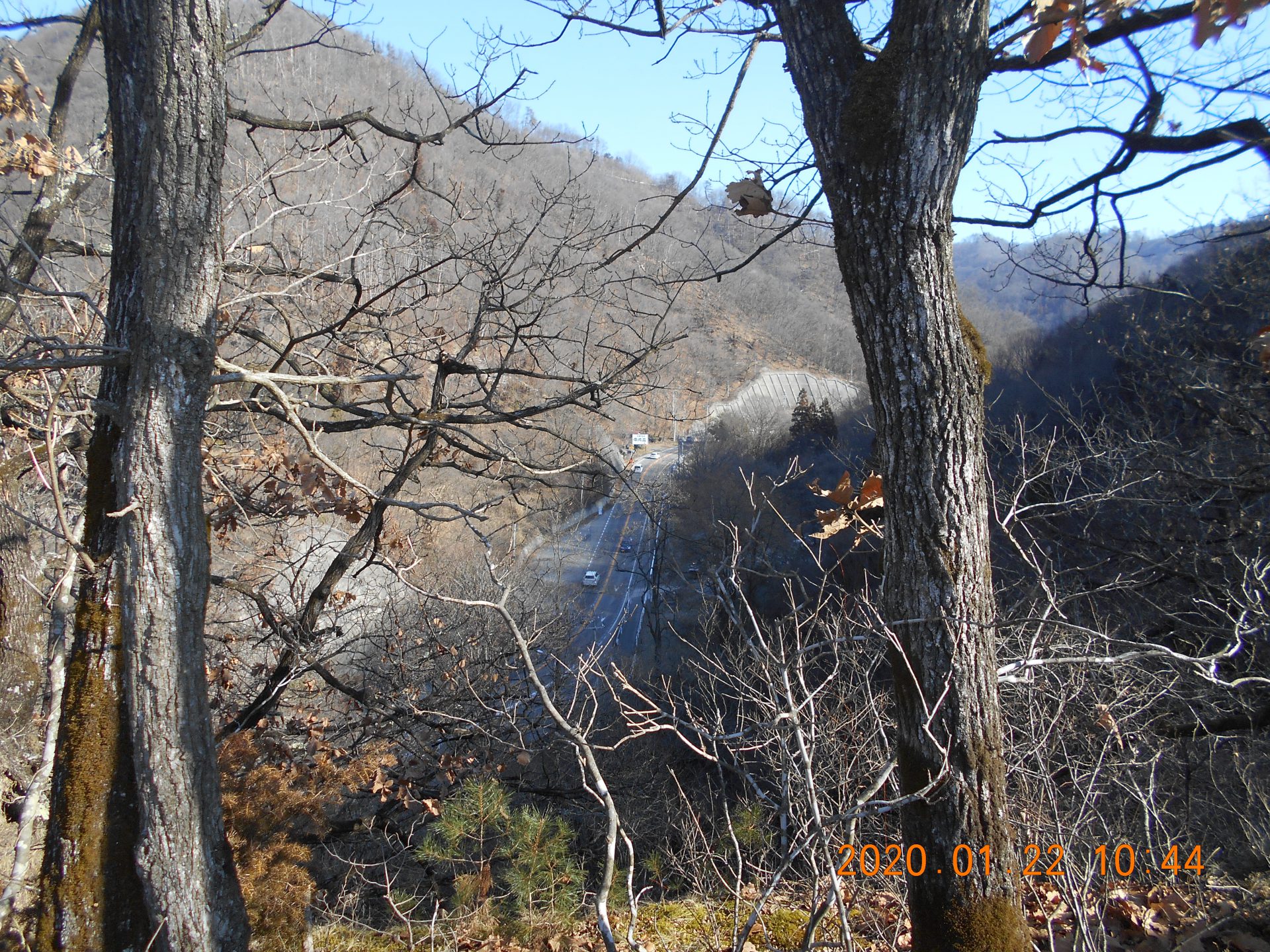 いつもは見られない反対側の景色、小さい車が見えます。