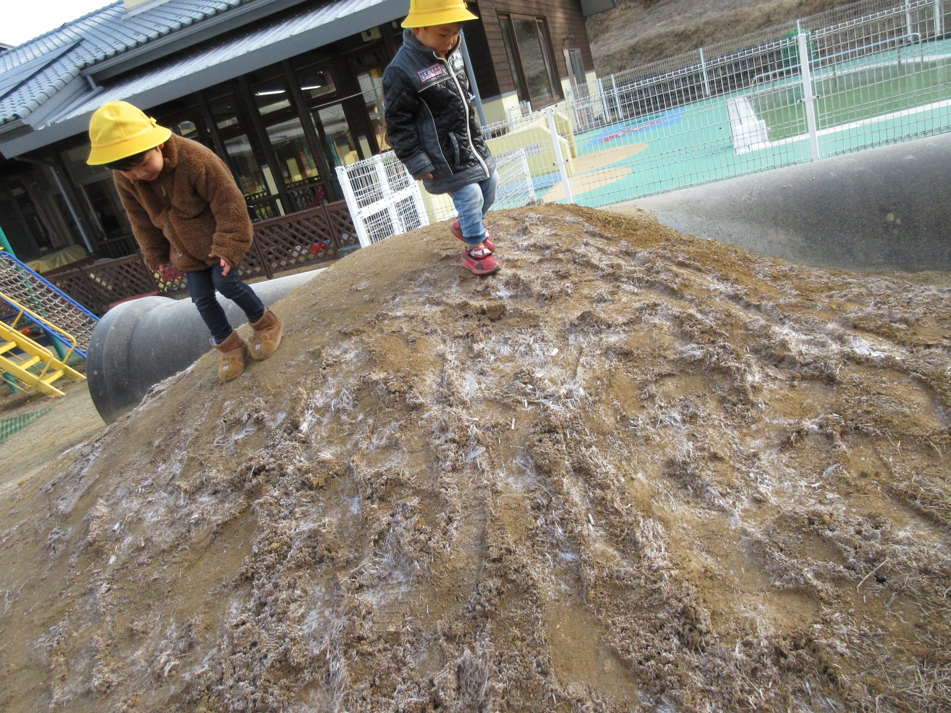 表面を触って、つるつるを感じたり、霜柱を踏んで感触を楽しんだり、氷を使って遊びを広げていく姿はすごいなぁと感じた。