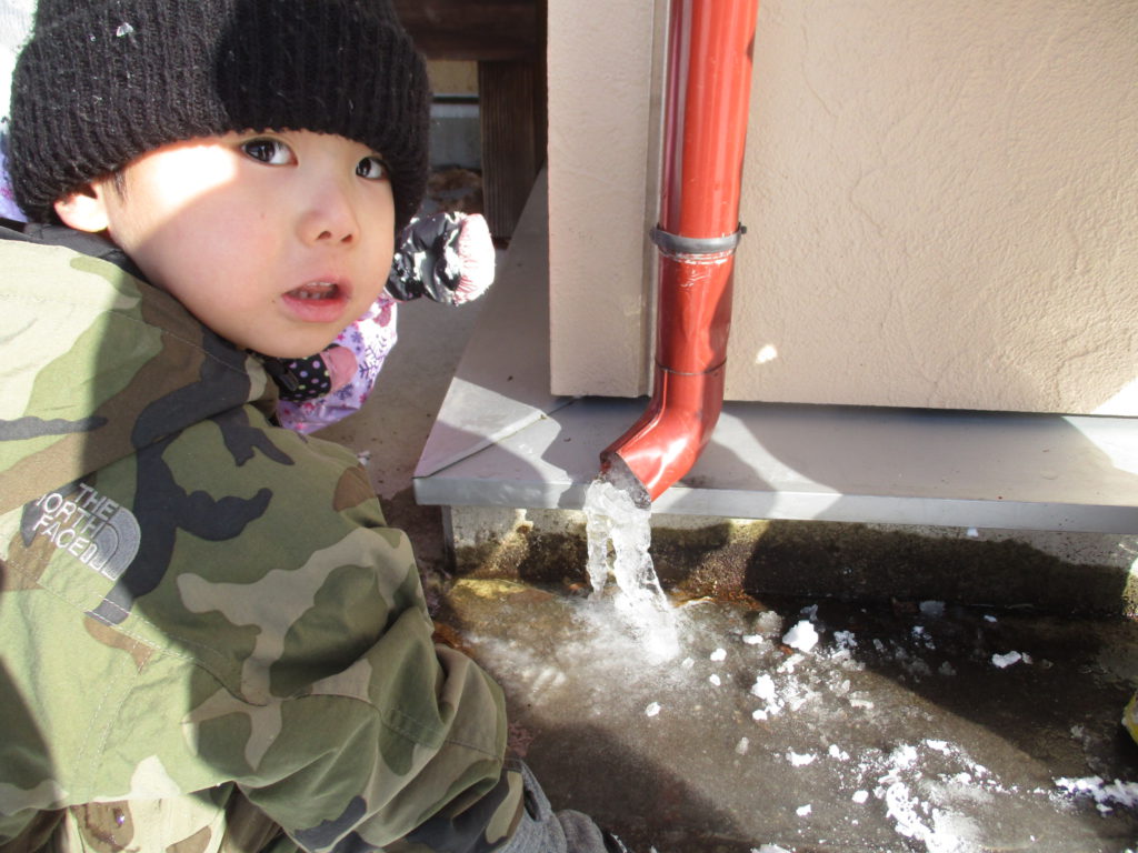 しかし午後の帰る時間、「あ!水流れてる!」「溶けたんだね」と一安心。