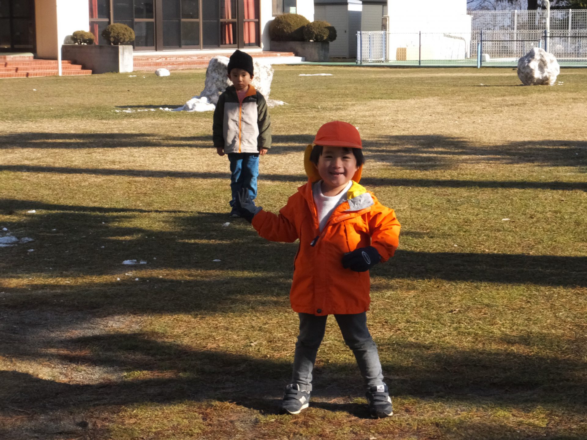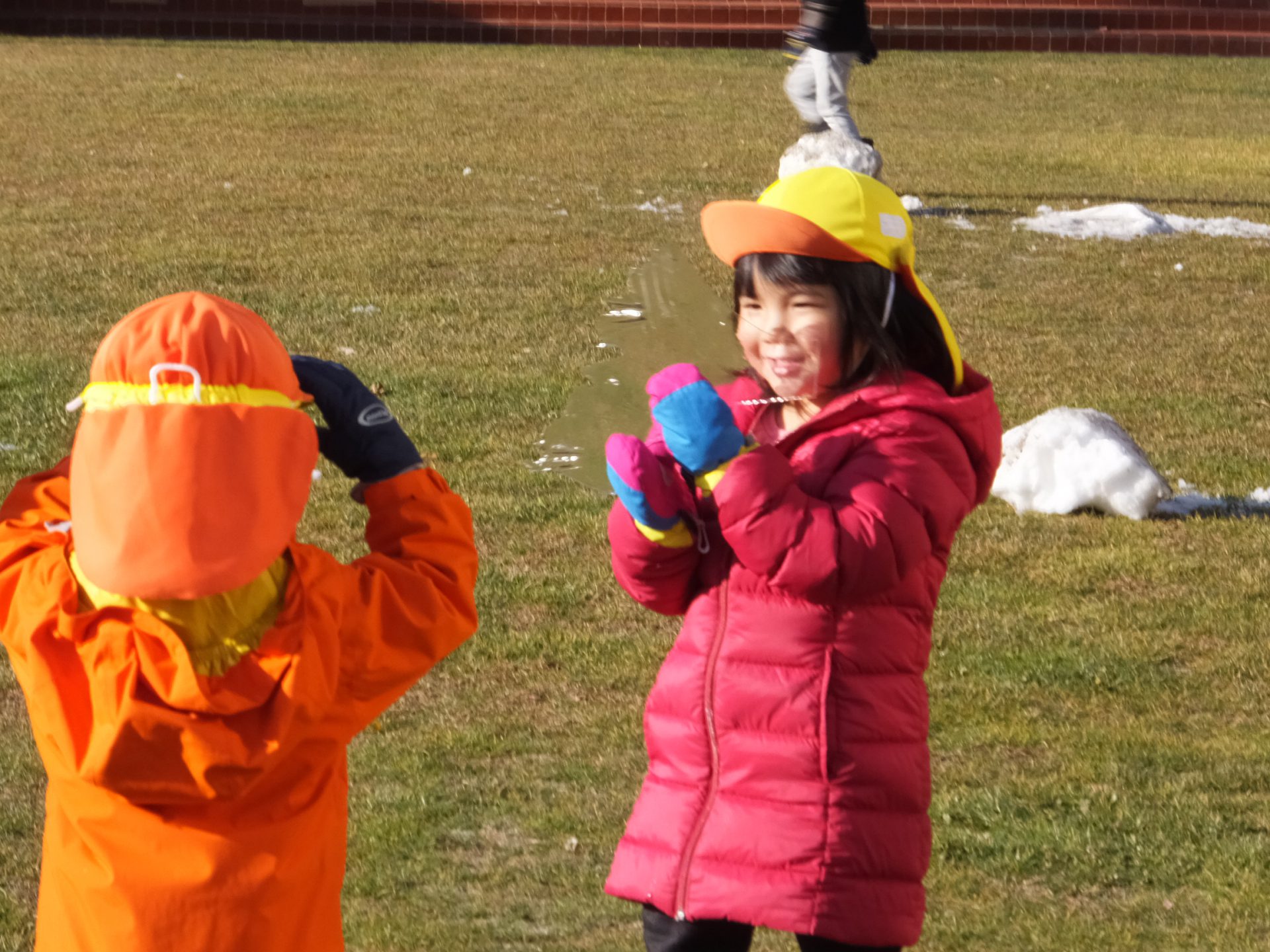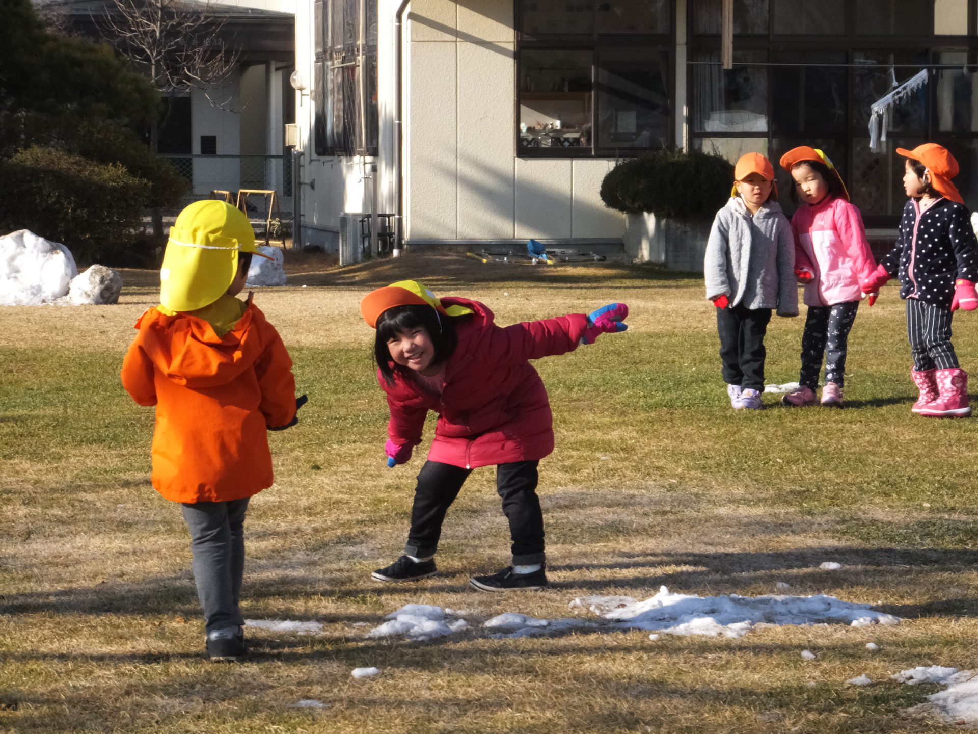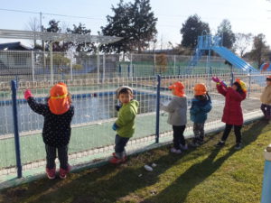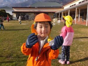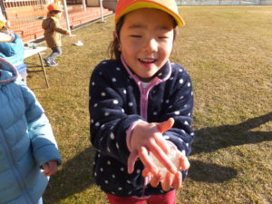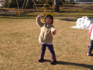 「〇〇もやるー」と今日は子どもたちが大勢参加しました。寒さなんてへっちゃら!