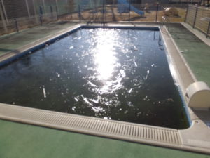 今年は雪が降らないねえ・・・なんて言っていた矢先、朝、園庭つづきにあるプールに氷がはっているのを発見!