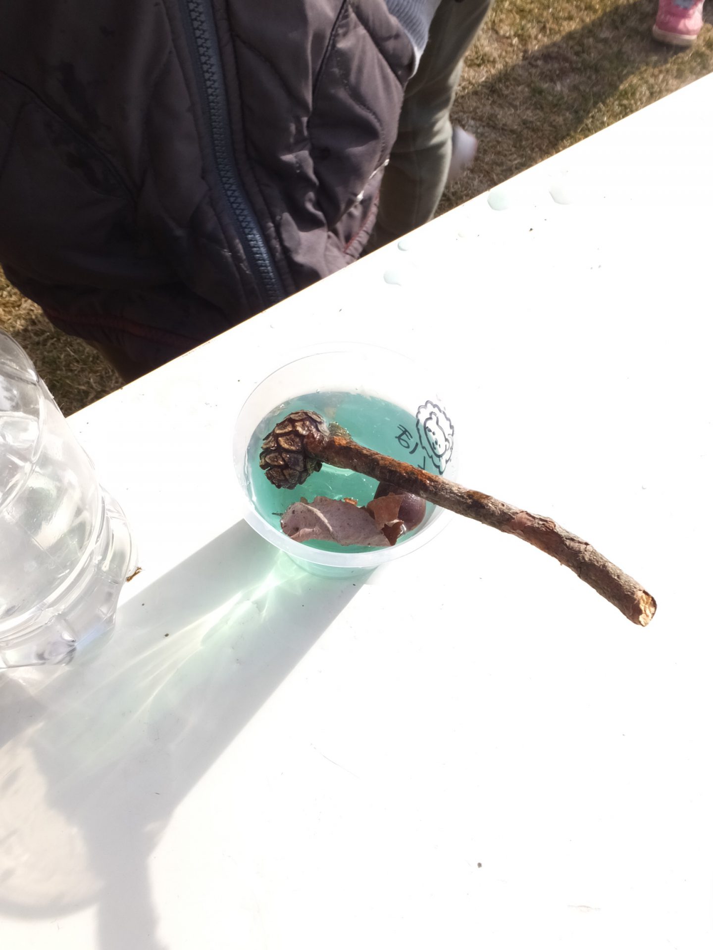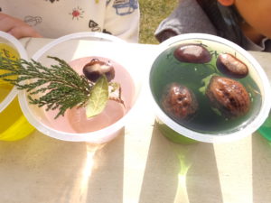 庭で色々な自然物を見つけてきて、そっと入れます。