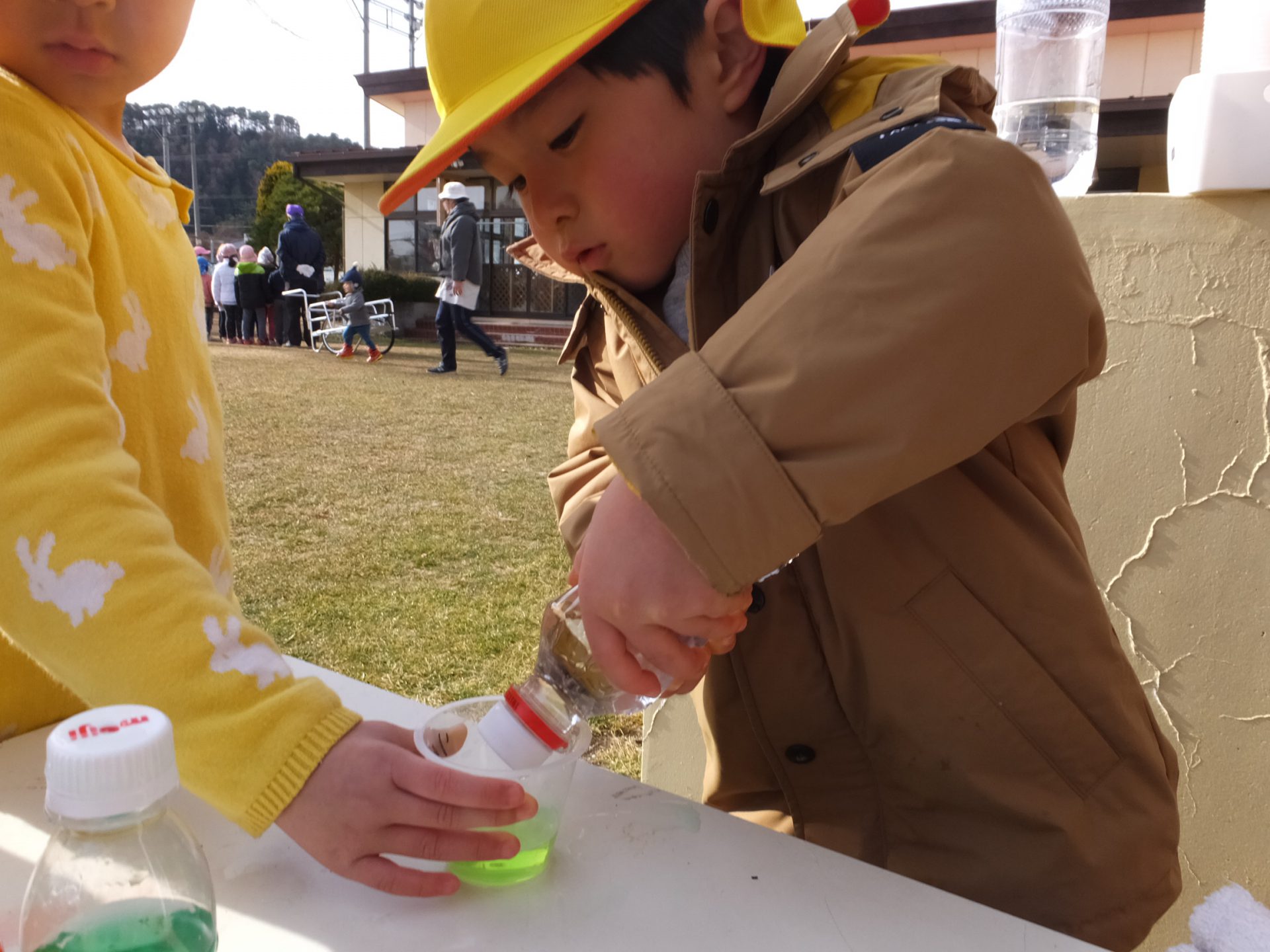 「おひるね起きたら、こおる?」「こおったら、色、変わるかな」