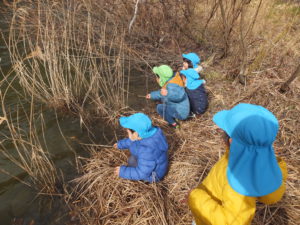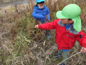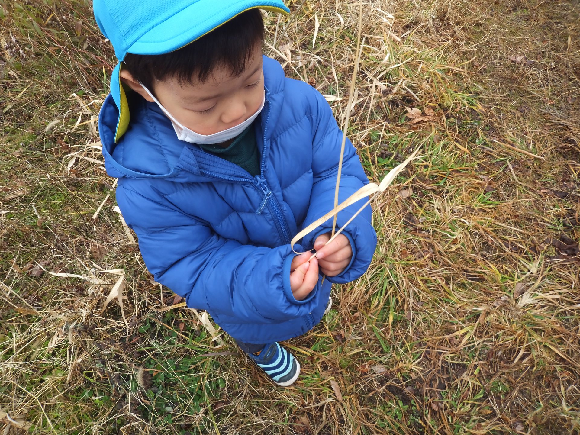 暖かな冬……子ども達は、野原の枯れ草を遊びに取り入れたり、普段目の届かない所に実っている木の実を発見したりして楽しみました。