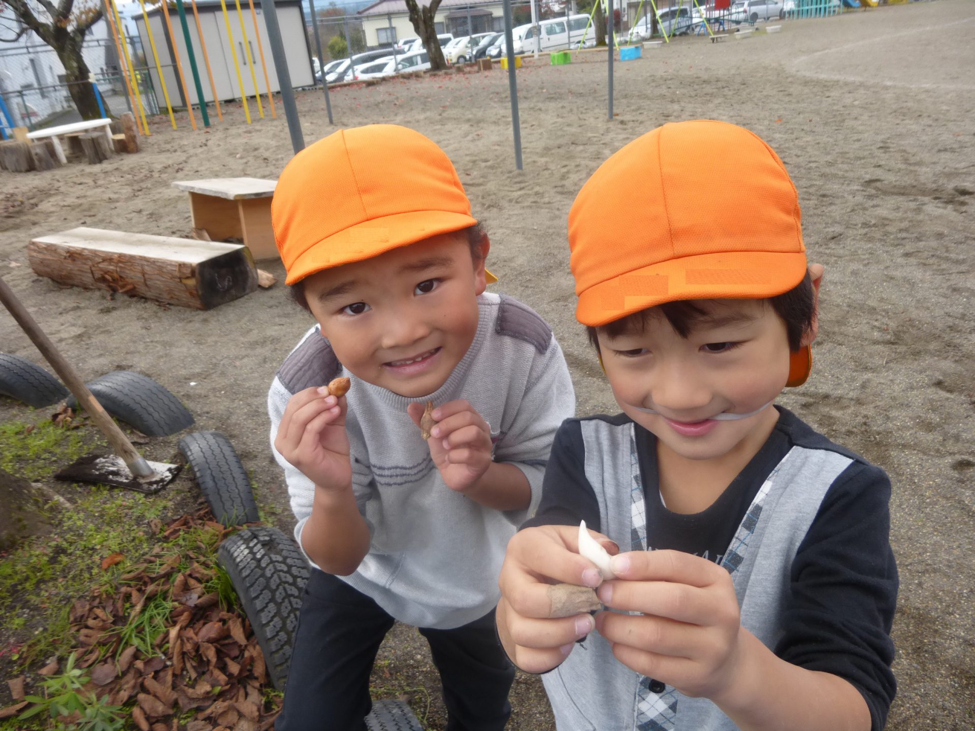 球根を植えている途中で「見て見て!赤ちゃんの球根!!」と小さな球根を見付け、そんな小さな球根も大事に植えてくれました。
