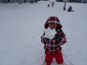 今年は暖冬でなかなか雪が降らない日々が続いていましたが、先日雪が降ったので、子どもたちは喜んで雪遊びをしました。