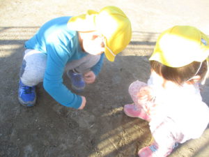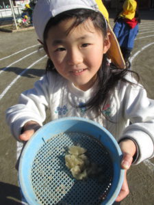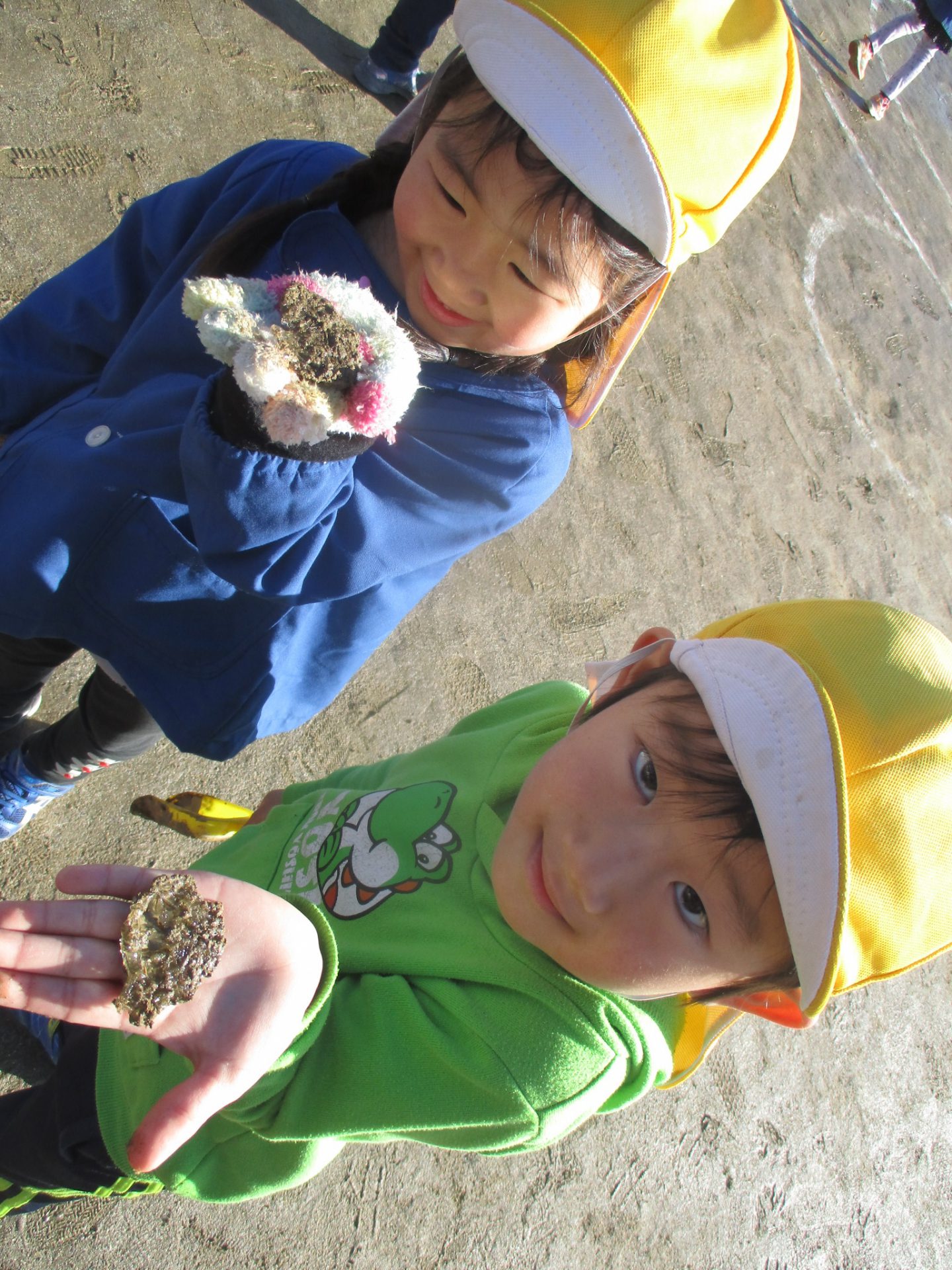久しぶりに冷え込んだ朝、いつものように園庭に遊びに出ていった子どもたちが発見したものは…