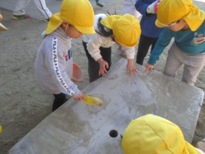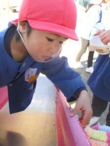年長児は日が当たってないところに氷や霜、霜柱ができることをわかっている様子!