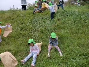草の上を思う存分転がって、大満足の子どもたちでした!