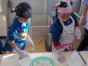 「あったかーい。」「もちもち。」「まるくできた~。」「むにゅって、でちゃうよ~。」