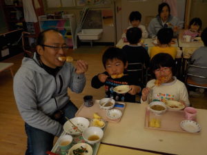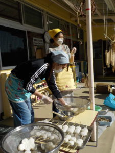 そしてお昼にみんなで食べました。JAや地域の方、お手伝いをしてくれた保護者の方のおかげでおいしい五平餅を頂くことができました。