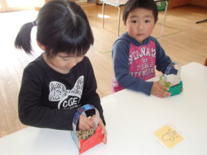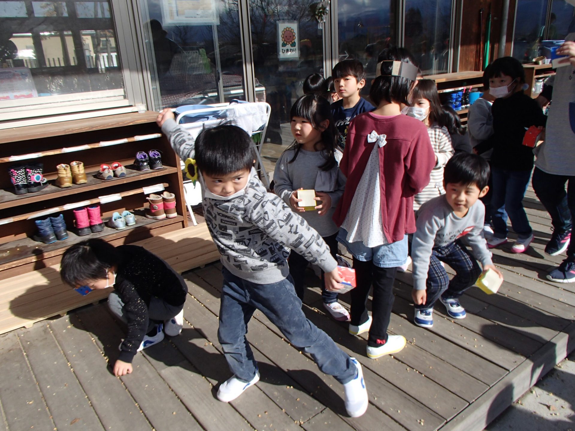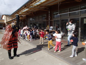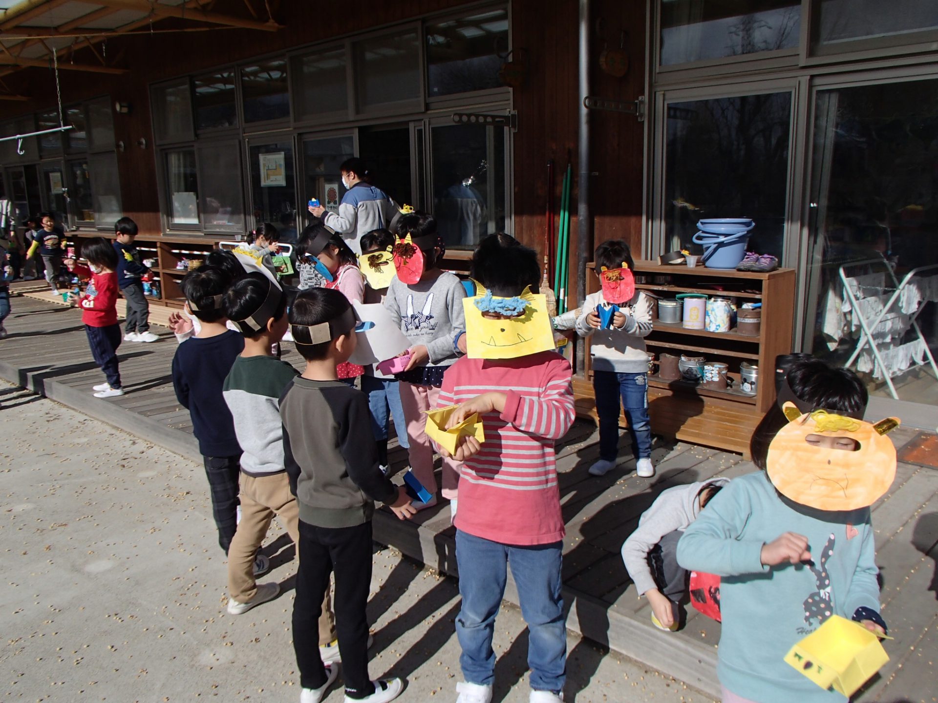「鬼やっつけるやつだ!」「豆まきのだよね!」と賑やかです。