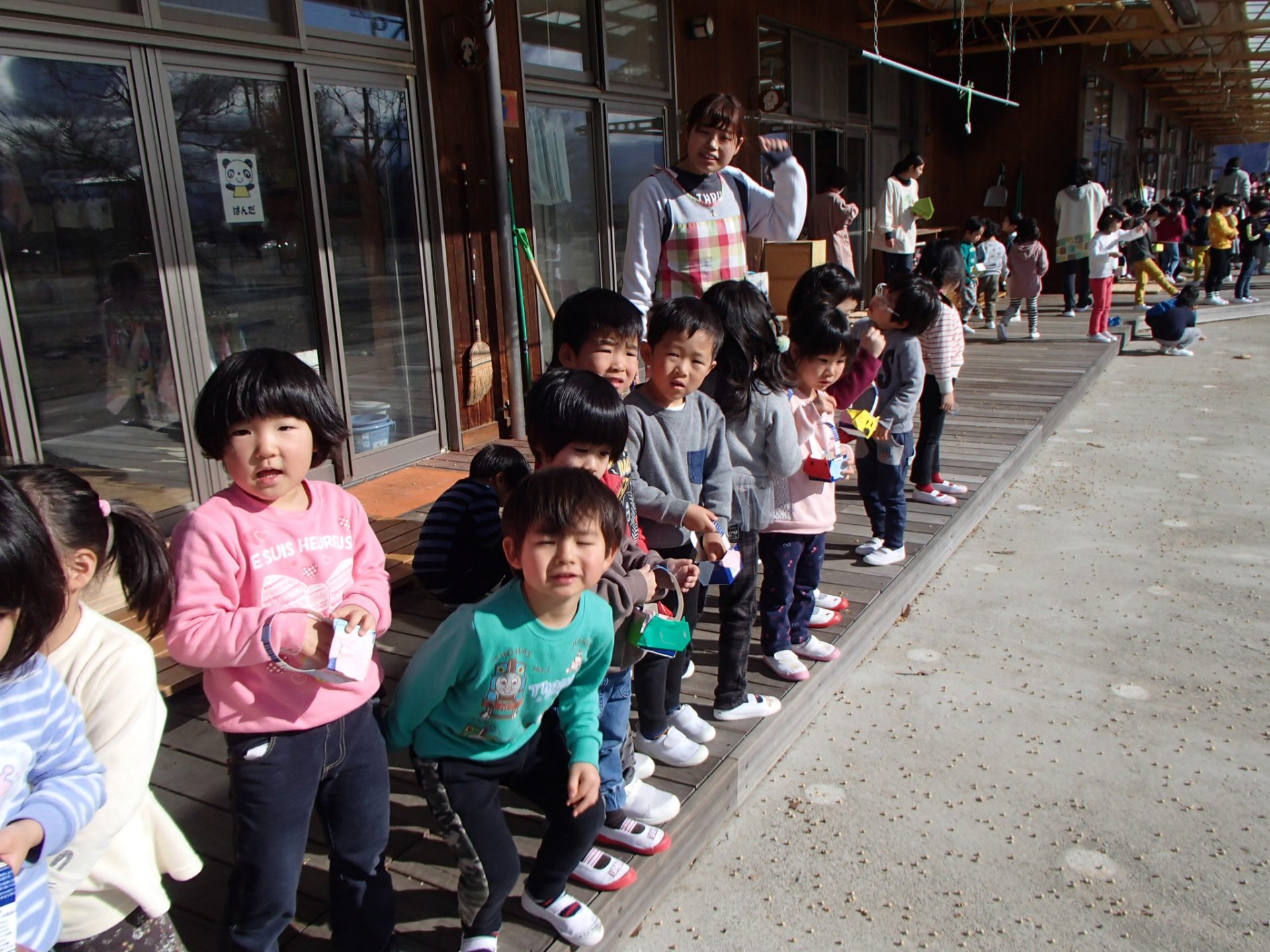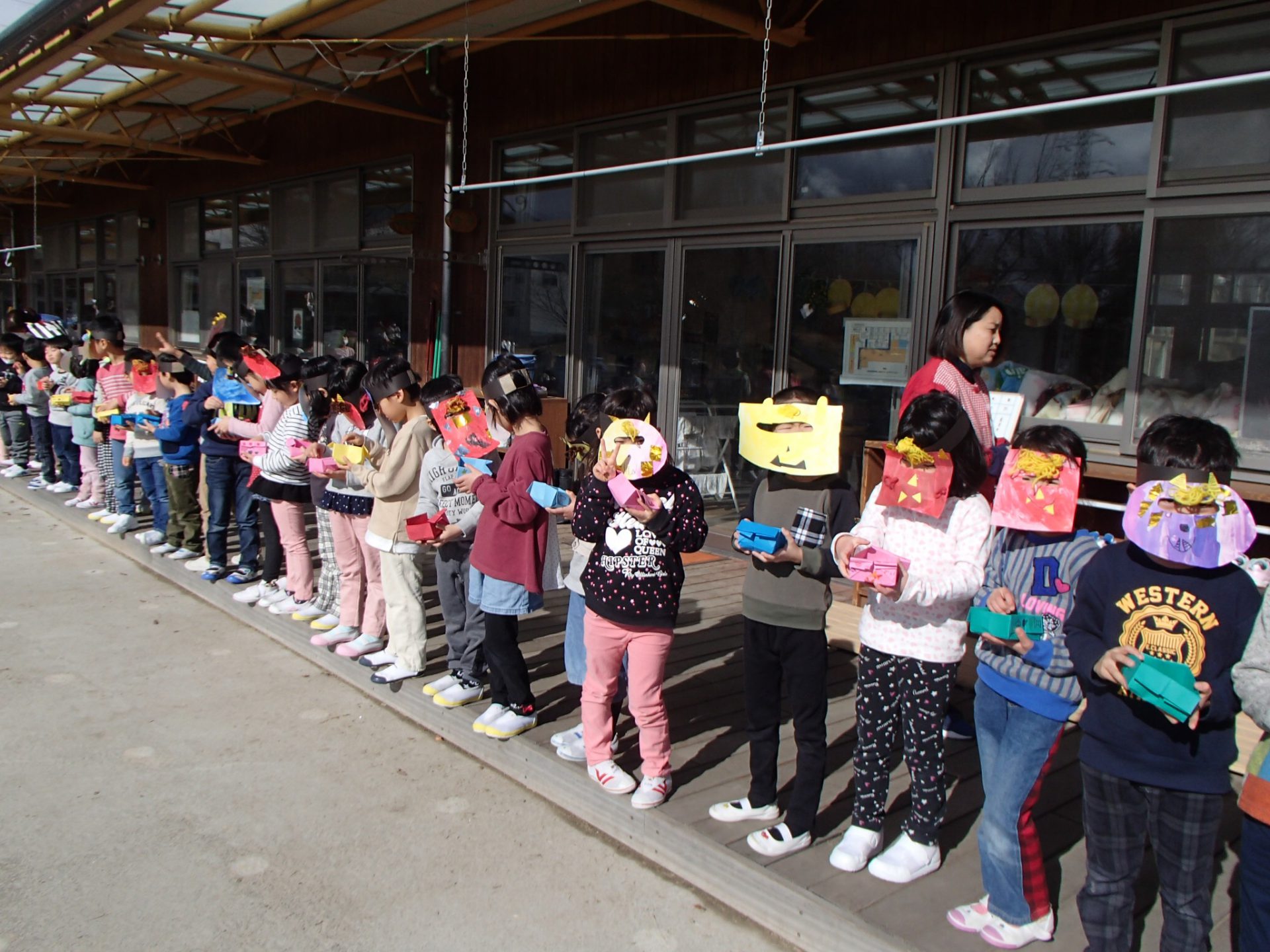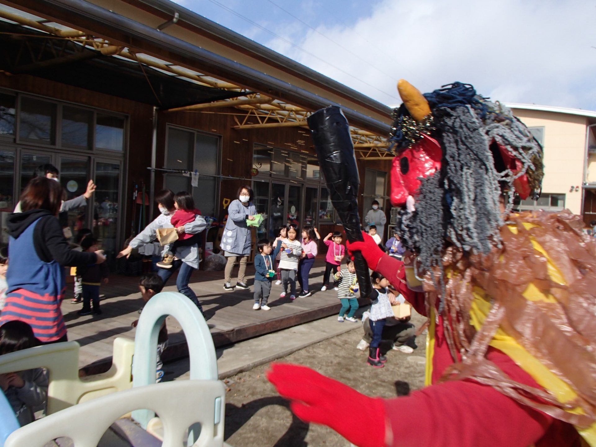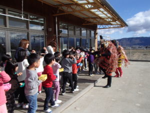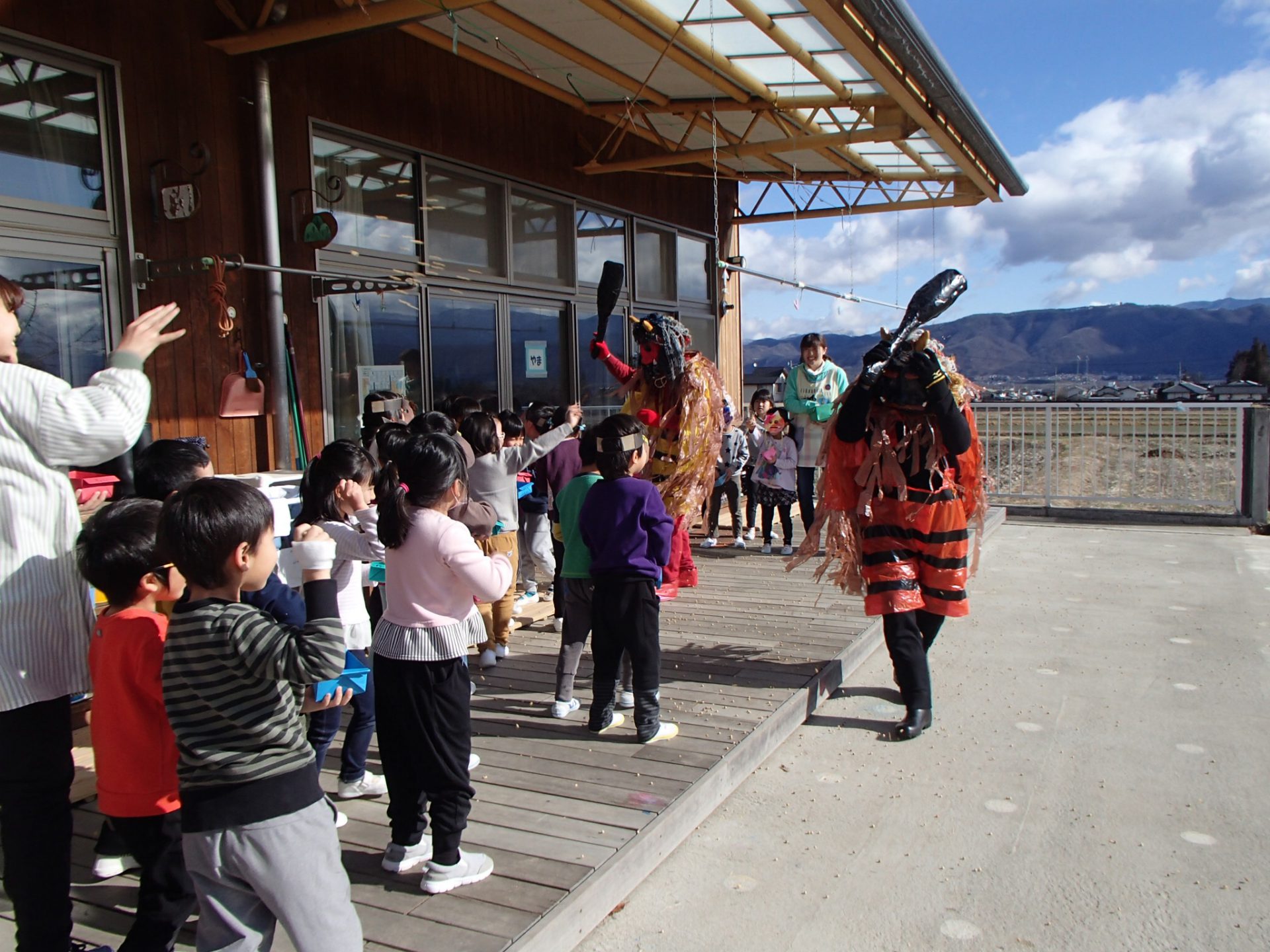 節分は、悪いもの(鬼)を退治し、良いもの(福)を呼び込む行事として、子ども達が自分自身を見つめる機会にもなっています。『泣き虫鬼』『おこりんぼ鬼』という中に『優しくなると鬼はいなくなるよ』という話を子どもがしていて、春を迎えるこの時期、またひとつ心も体も成長した子ども達を感じることができました。