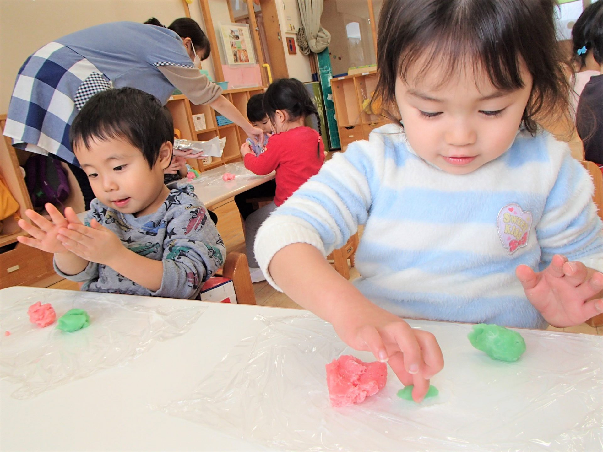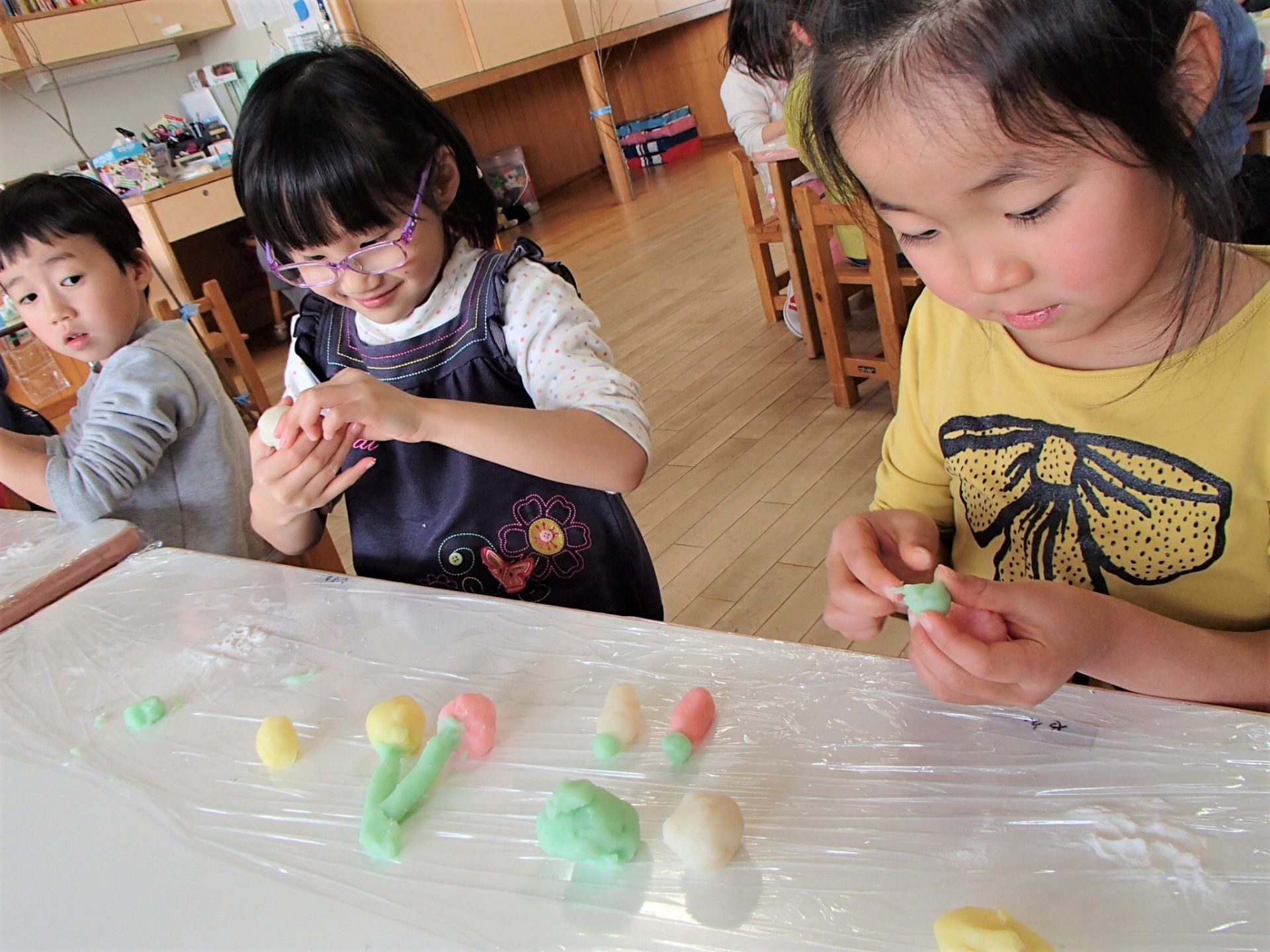 年長さんは「さくらんぼ・いちご・だいこん!」と作りたいものに合わせて色を分けています。
