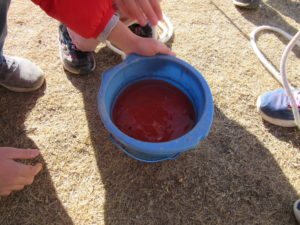 氷さがしをしていると、一人の子が、水で氷を洗ってもってきました。