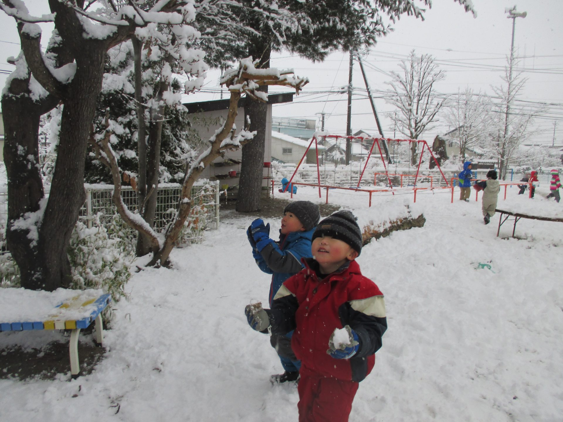 「雪が、落ちて来たよ。」「雪、捕まえたよ。」