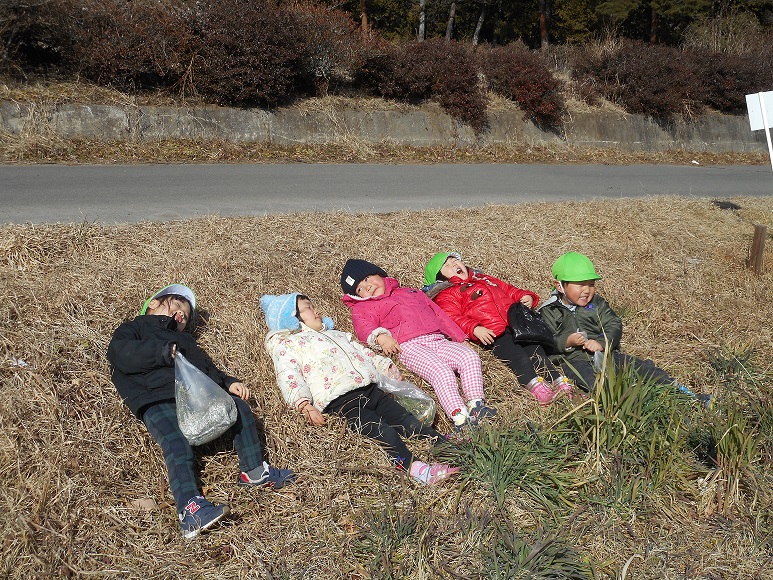 「いいところみつけたよ」と、みんなで寝転んでみたよ。