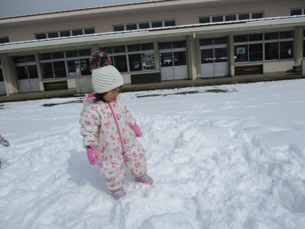 わずかな積雪ですが、子ども達にとっては雪で遊べることが嬉しいようです。