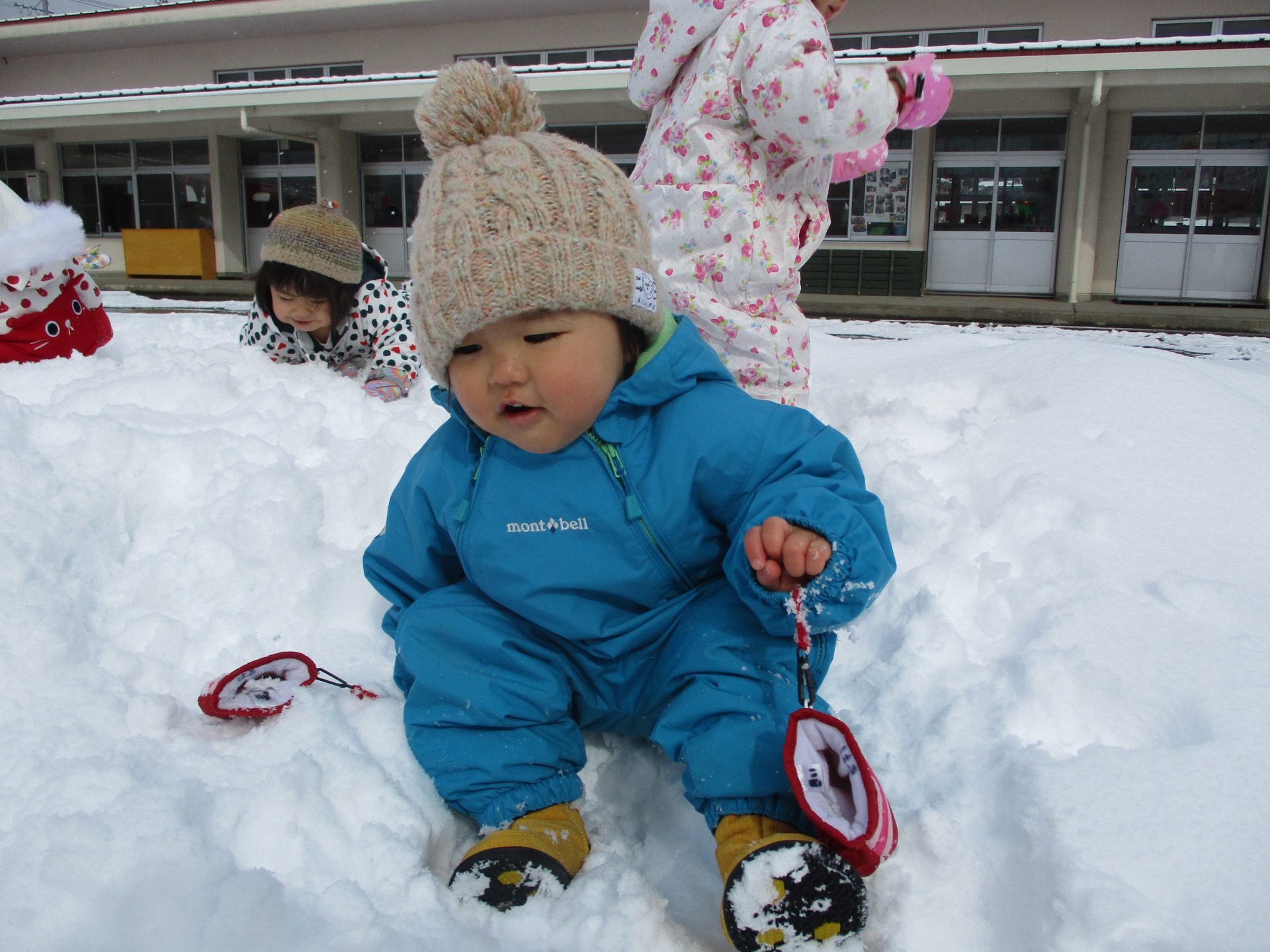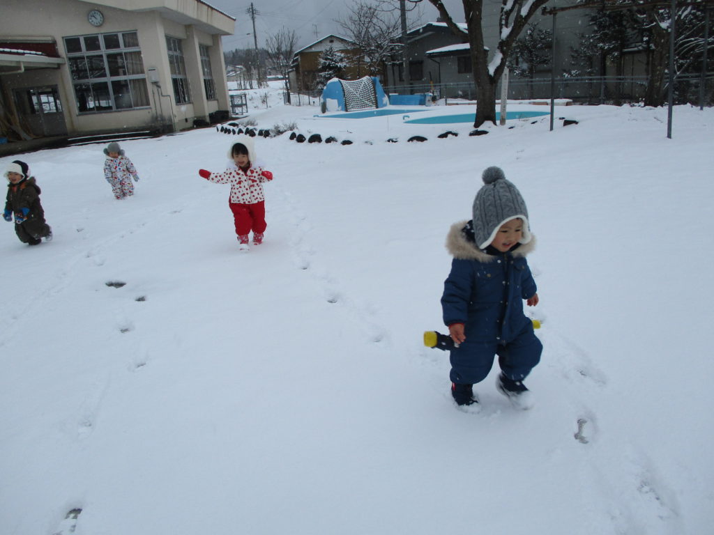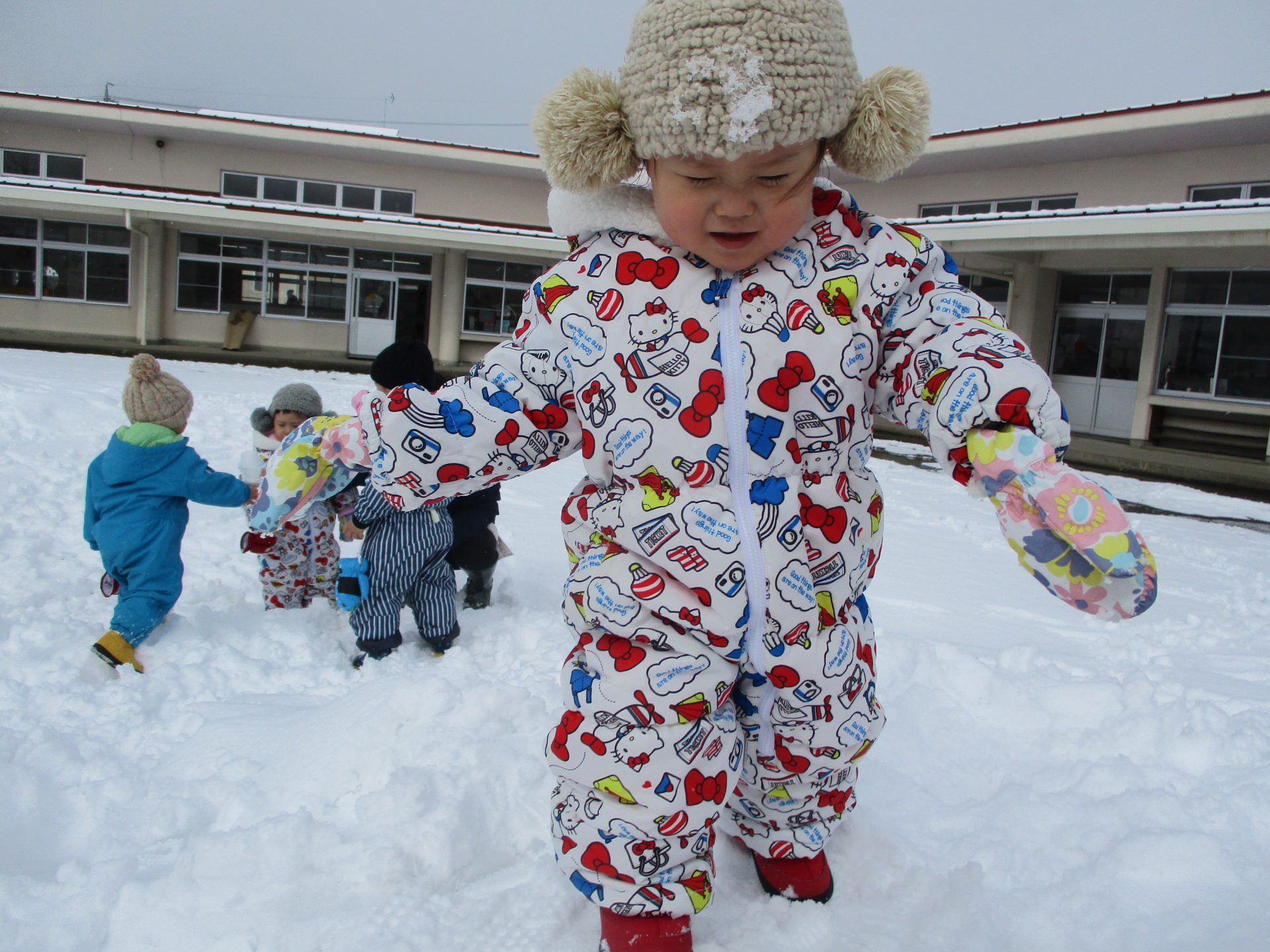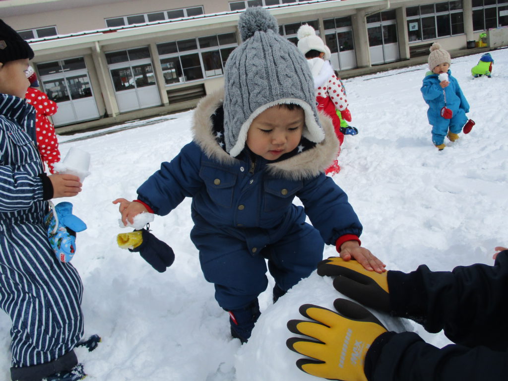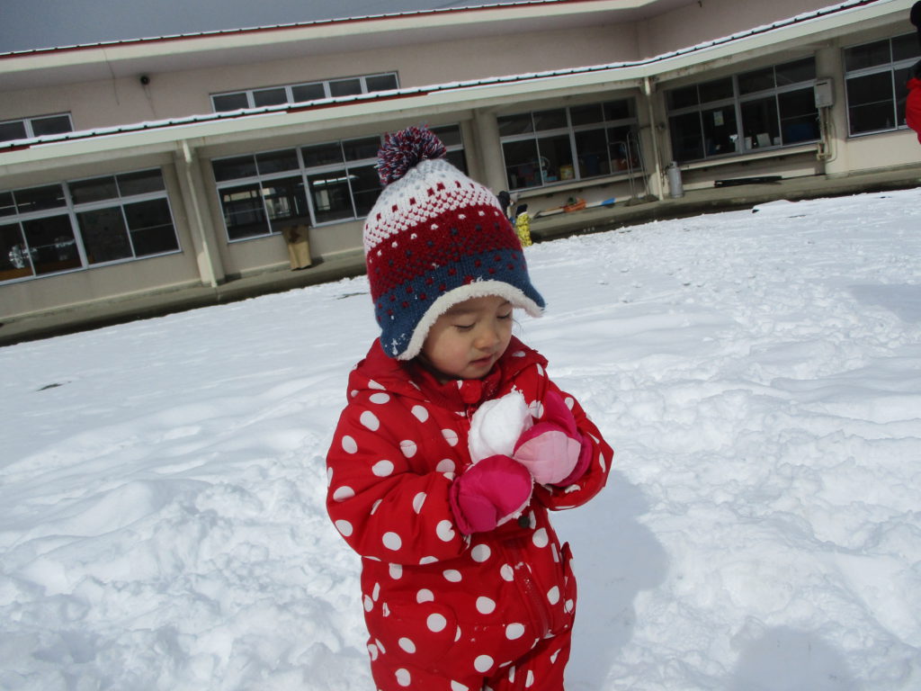 わずかな積雪ですが、子ども達にとっては雪で遊べることが嬉しいようです。