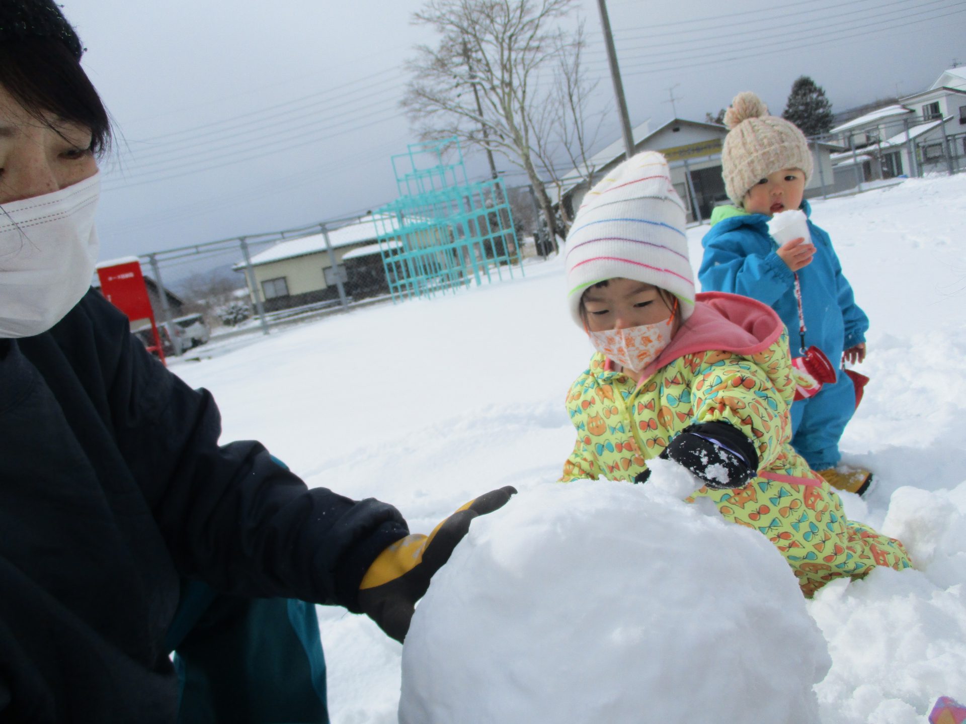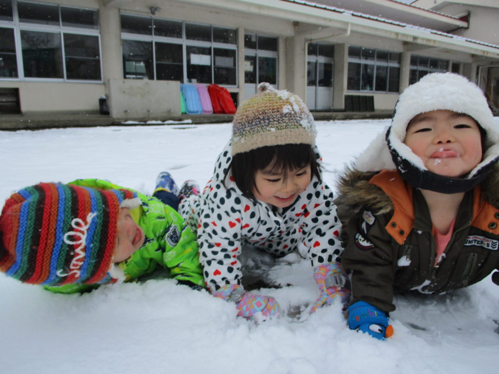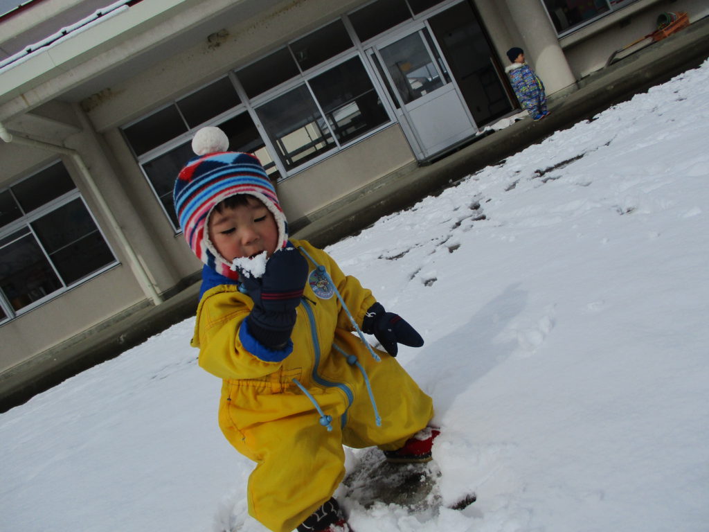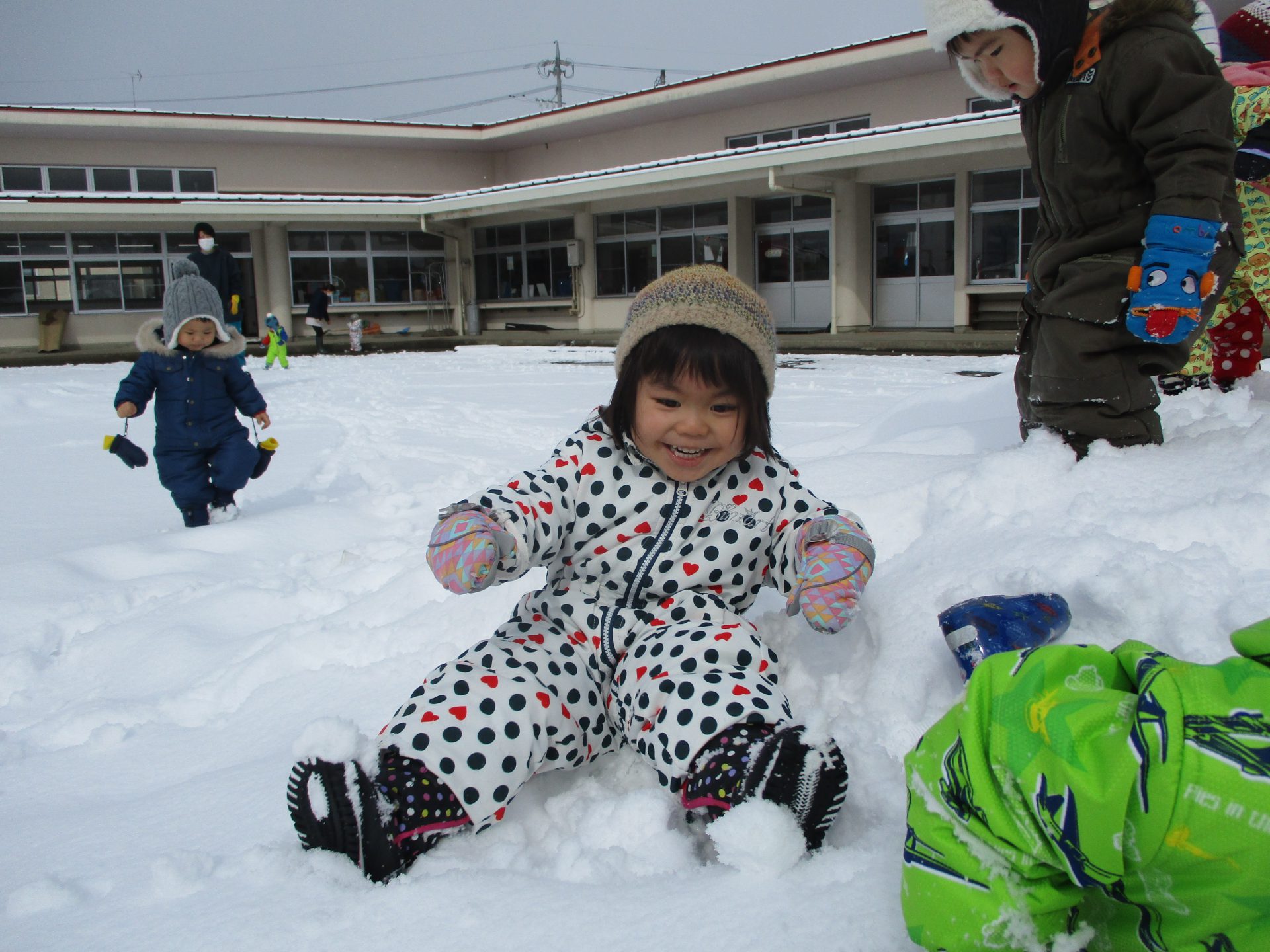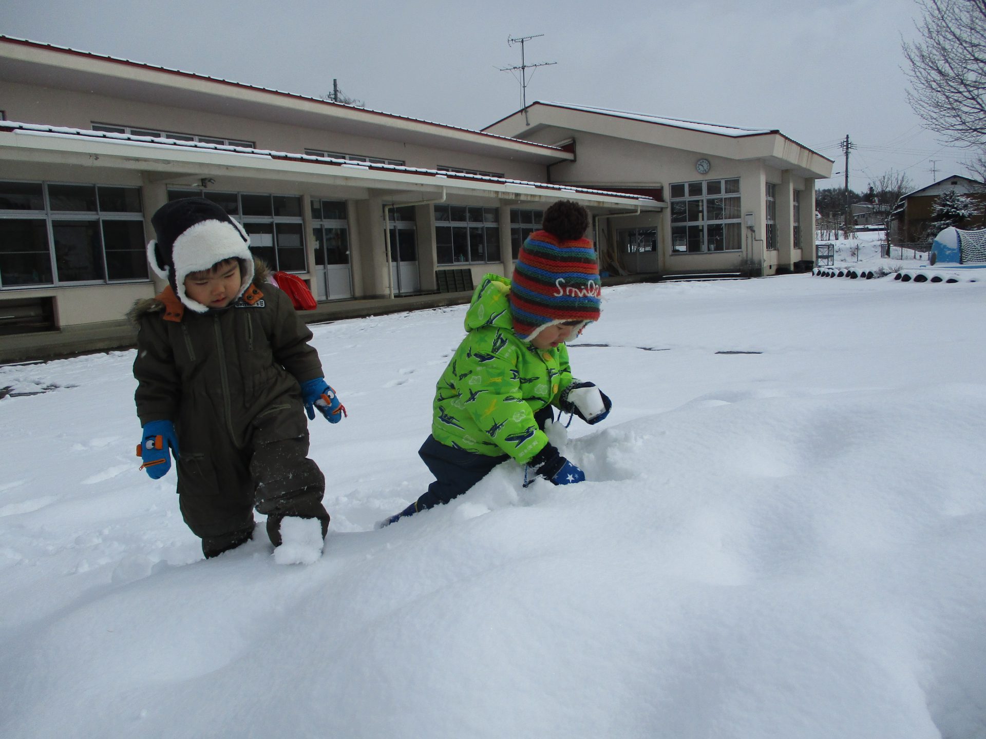 わずかな積雪ですが、子ども達にとっては雪で遊べることが嬉しいようです。