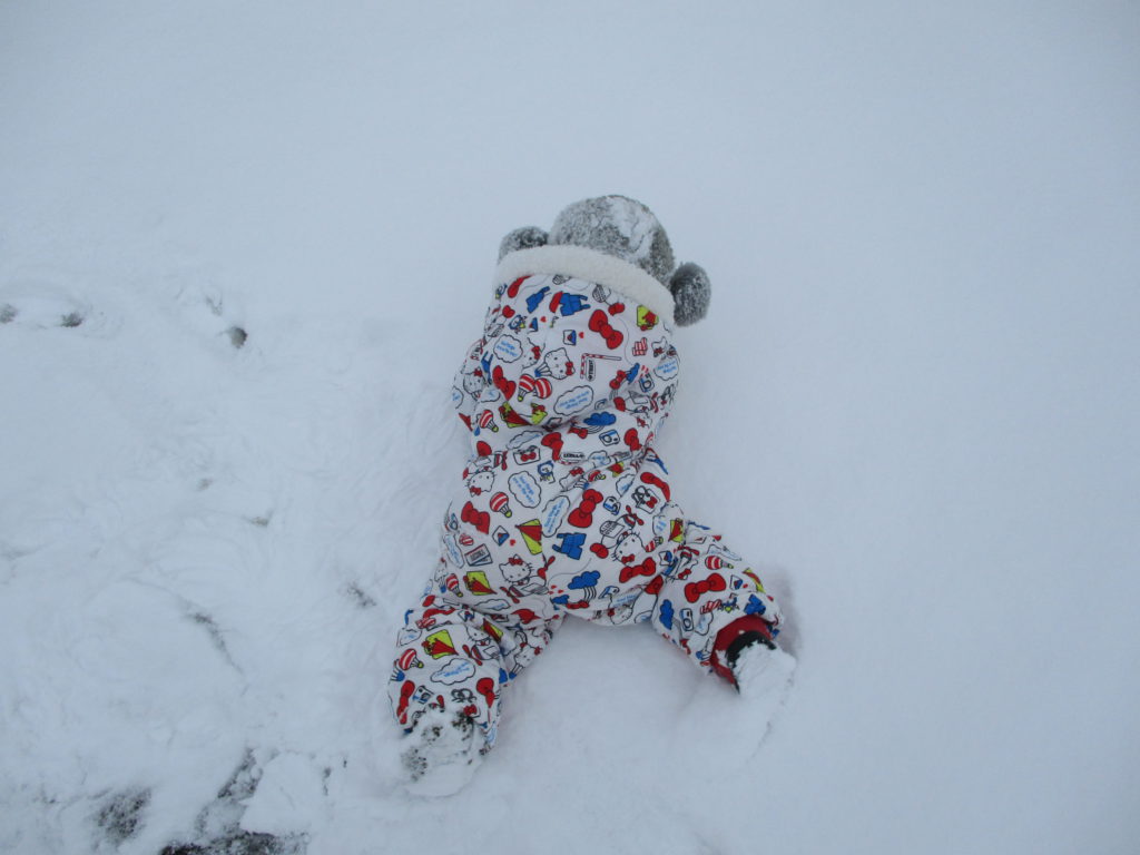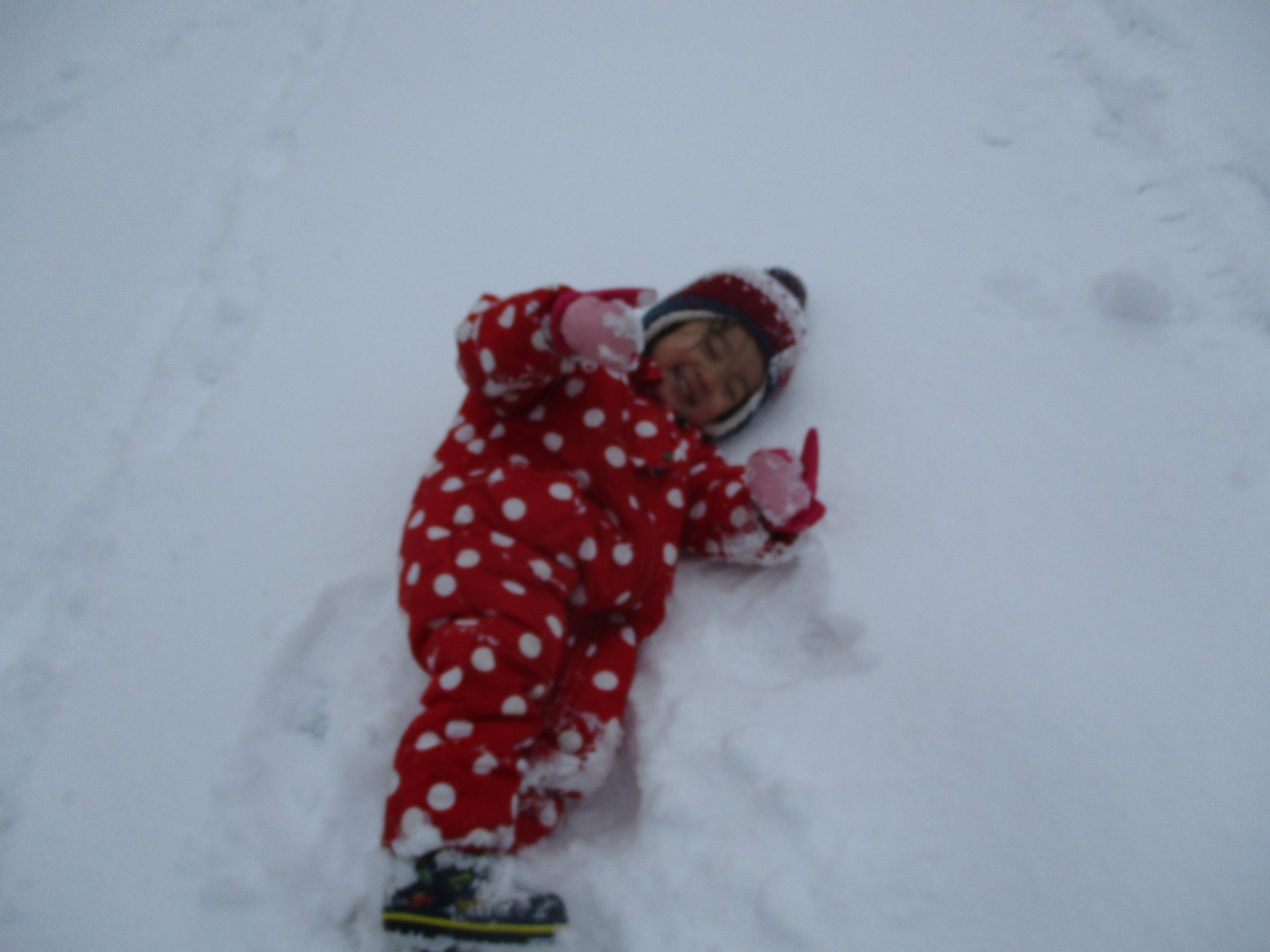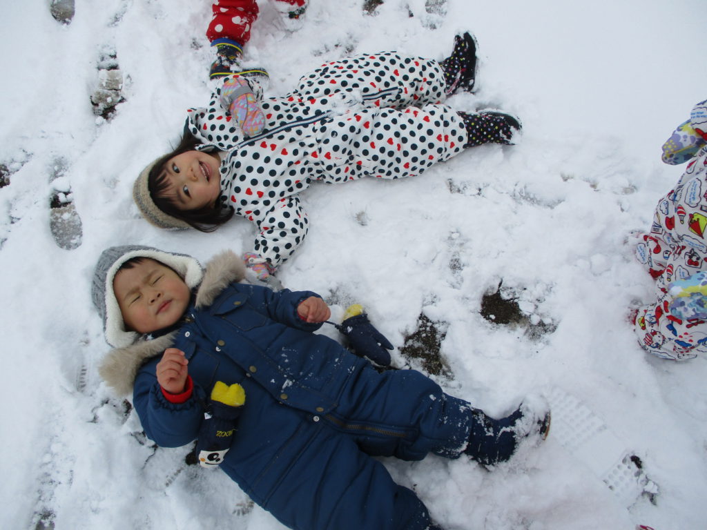 手で触れるだけでなく、体全体を使って楽しむようになってきました。安心して雪に飛び込んで遊ぶ姿に嬉しくなります!