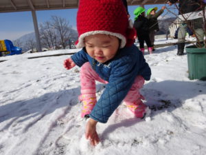 素手で雪を触った子は「つめた~い」と言いながらも表情はとてもにこやかでした。