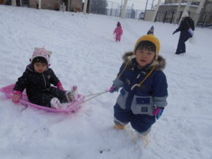 雪を見た子ども達は朝から元気いっぱいに登園してきました。