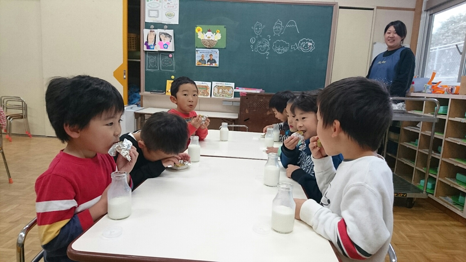地域の方と育て、掘ったさつま芋。そのまま食べてもとても甘くておいしいお芋でしたが、給食の先生の手が加わり、よりおいしく、温かみを感じました。子ども達と食に関わる人々とのつながりを大切に、調理や食材への興味、関心をひろげ、思いやりや感謝の心が育つ食育を大切にしていきたいと思います。