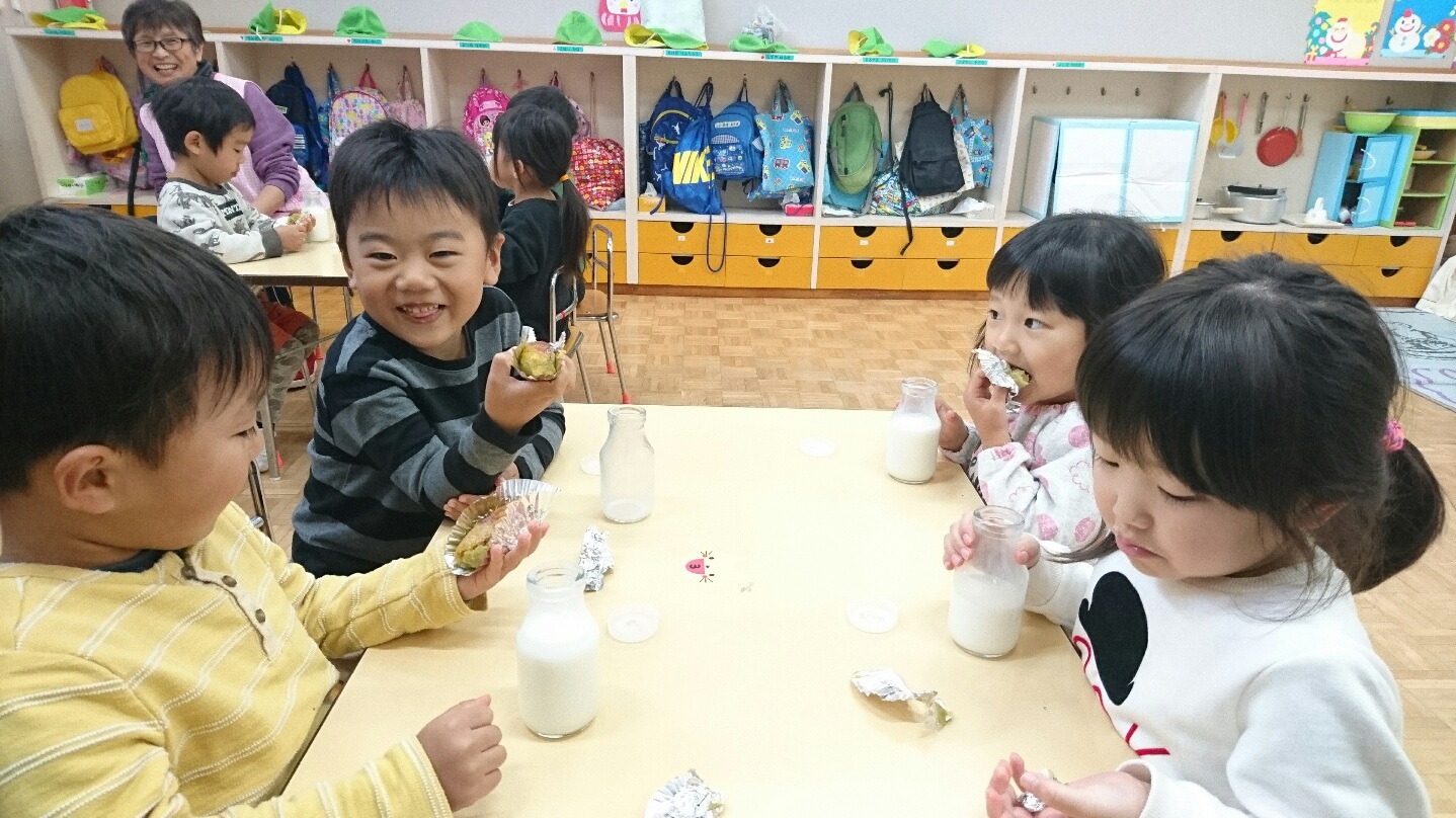 そこで、今日のおやつを特別にスイートポテトにしました。