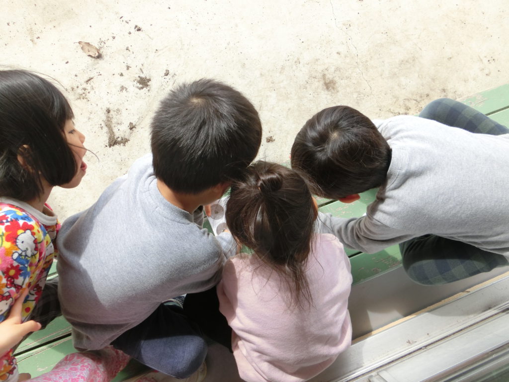 「あーあ…」まだ後ろの方を歩いている保育者と友達に見せたかったのです。すると一人の男の子が「じゃあパズルみたいにくっつければ?こんなに大きかったって分かるよ!」なるほど!みんなで相談しながら完成し、大きかったんだよー!と伝えることができました。