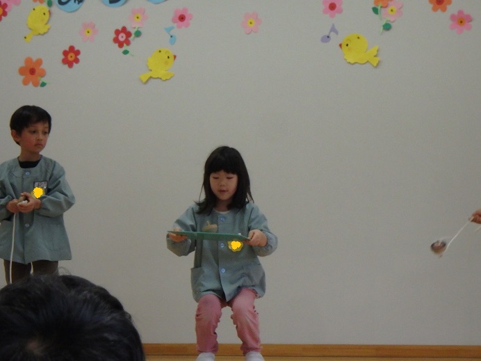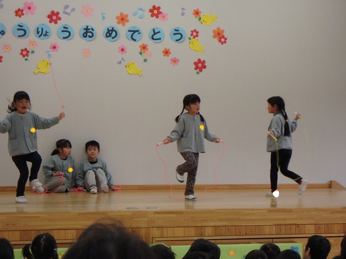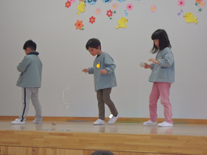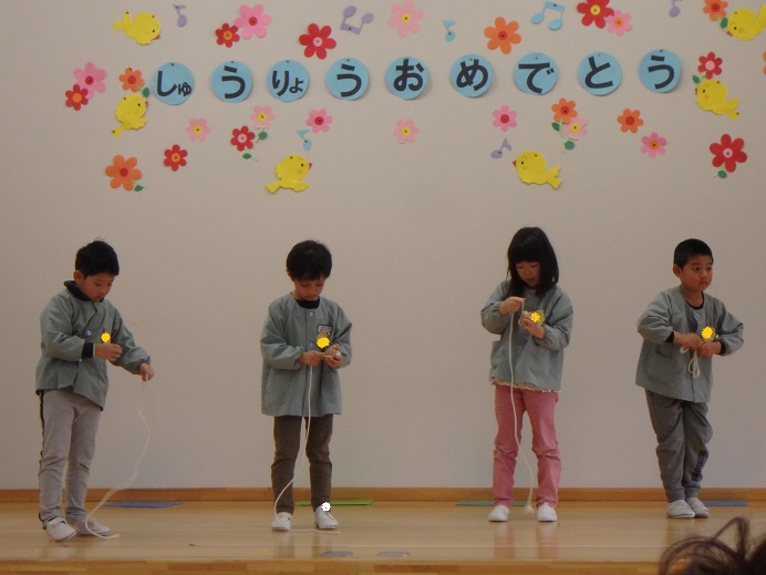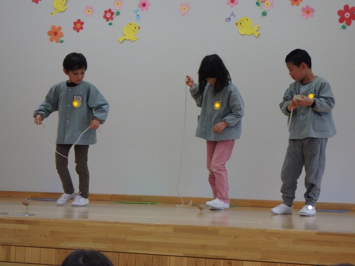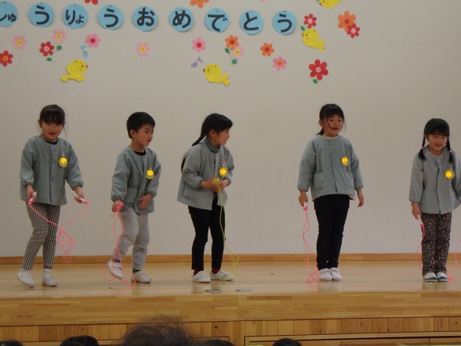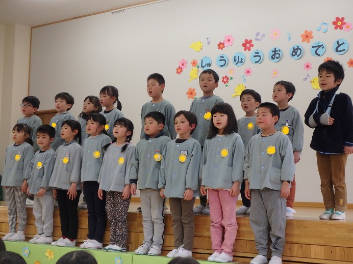年長児は大勢の前でしたが、自信をもって発表する姿があり成長を感じました。その姿を見ていた在園児からも、「すごい!」「かっこいい」と声が聞かれ、進級への期待も高まったのではないかと思います。