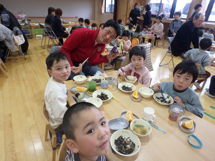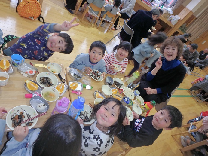 その後は、地域の方々と会食です。子ども達も楽しそうに食事をしていました。