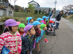 みんなで保育園の裏道に散歩に出かけました。