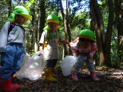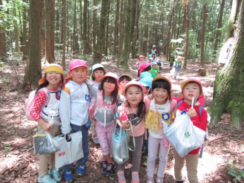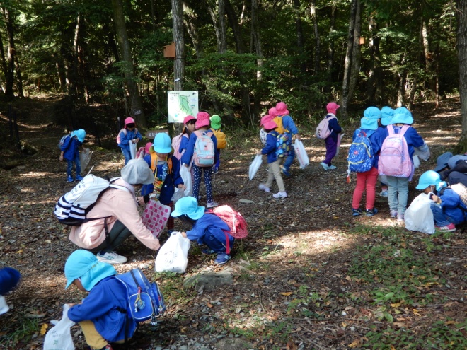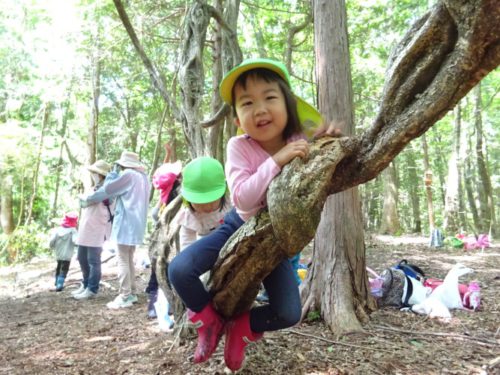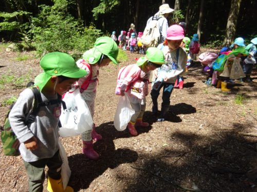 毎年、年に1回は森を訪れている。今年は季節の違いによる森の様子を子どもたちに見せてあげたいと思い、春と秋に園外保育を計画した。