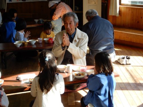 田植え前の田んぼで、泥んこになってあそび、田植え、稲刈り、はざかけ等、なかなかできない農業体験をさせてもらい、収穫したもち米で餅つきを行い、お世話になった方々をお招きして味わっています。