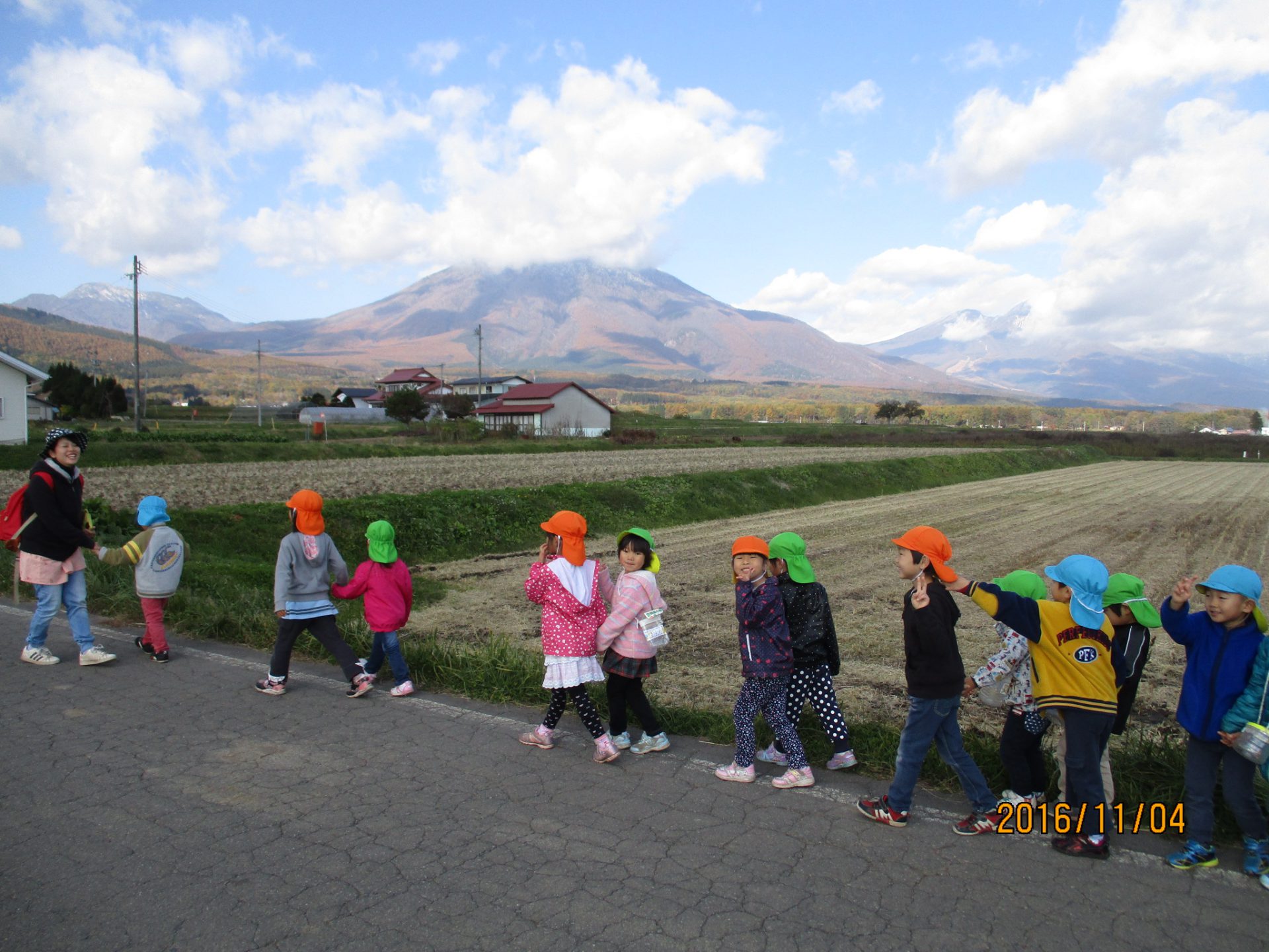 『何の帽子?』と聞くと「雲の!」と子ども達の想像を豊かにしてくれる景色を見ながら歩いて行くと、良い匂いがしてきました。