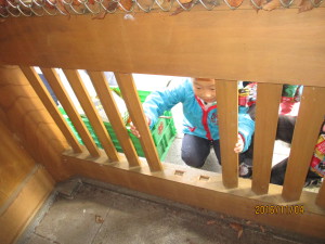 境内で遊んだ後、仁王様に挨拶をして帰りました。「また来るね~!」