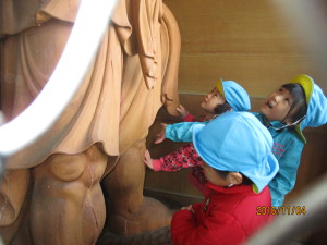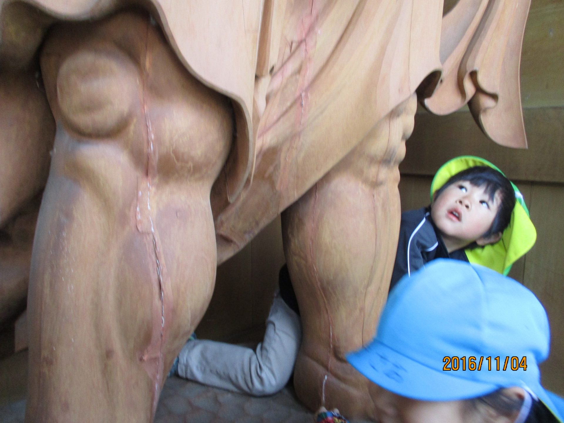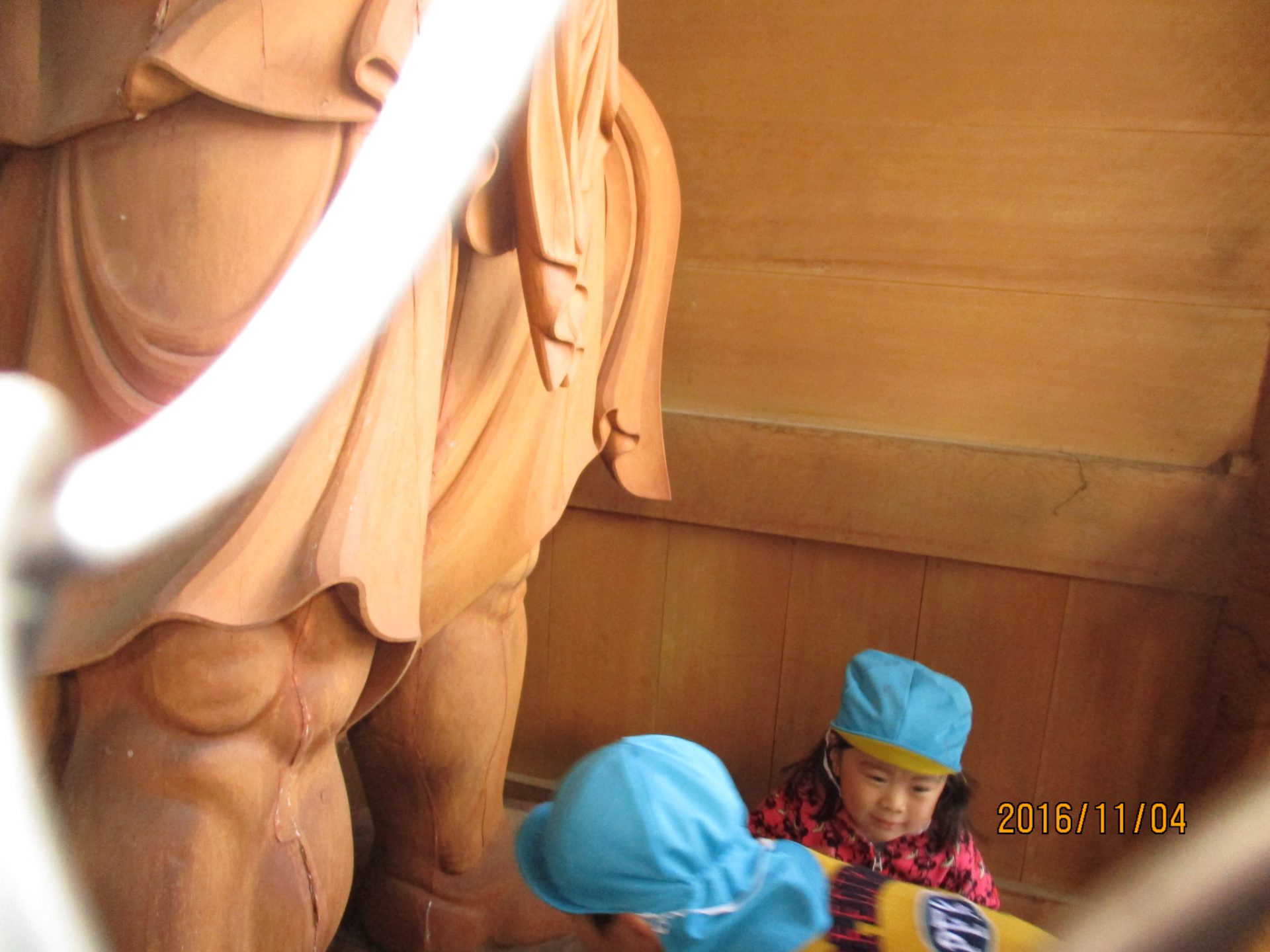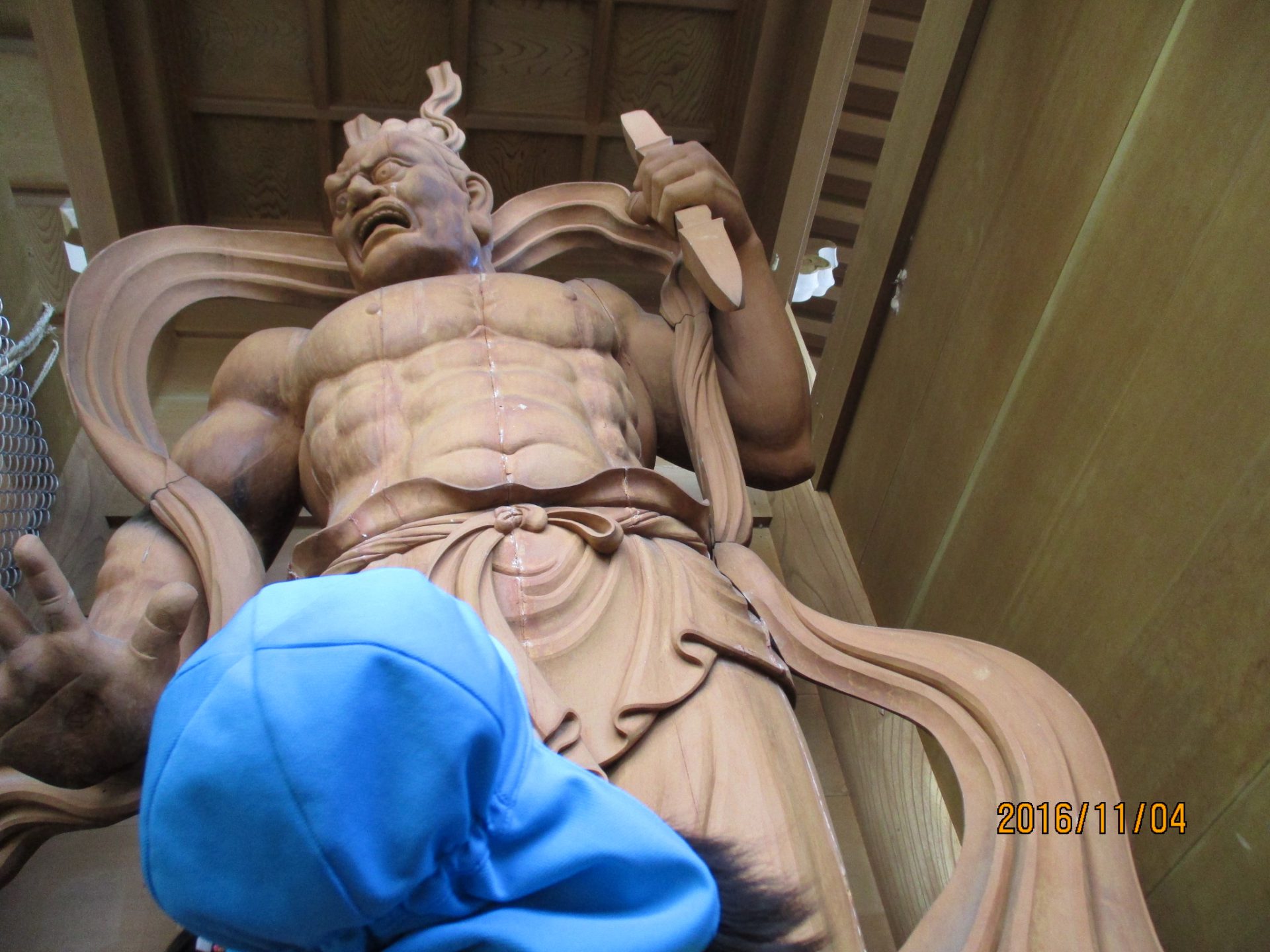 春にも遊びに来ましたが、久しぶりの仁王様の姿に「おっきー!」「こわい!」「動く?」とちょっとびっくりの子ども達です。