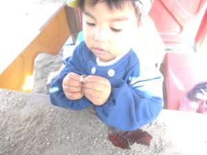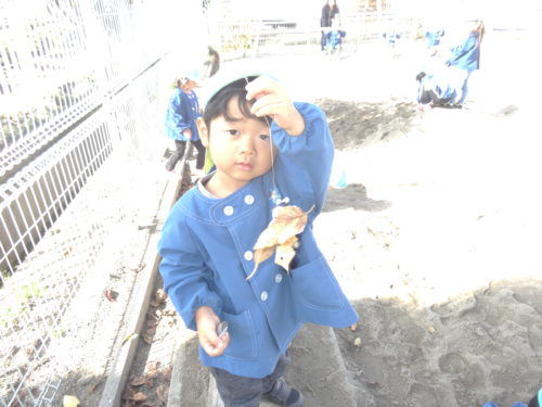 ○保育士が葉っぱを使って遊ぶ様子を見て、自分もやってみたいと思う。