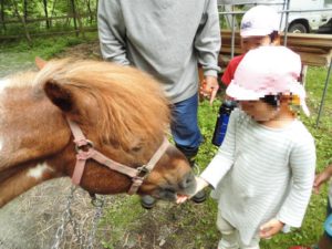 馬に餌をあげることで、触れ合いや親しみを感じてほしい