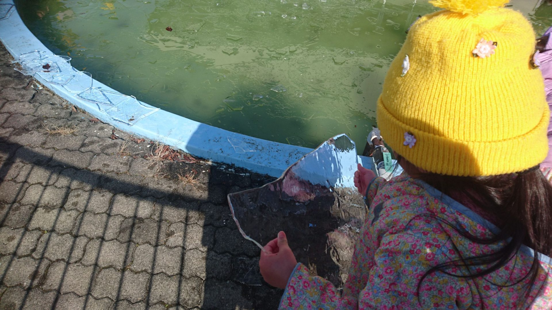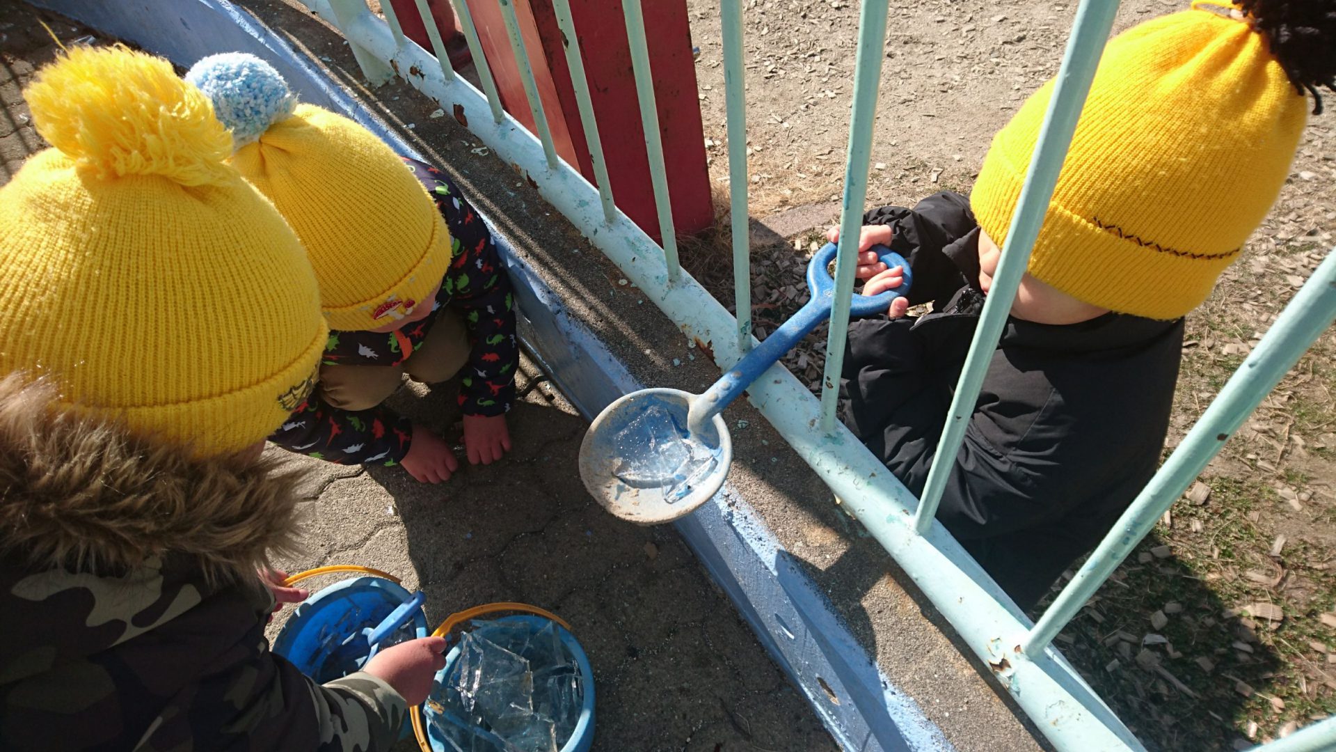 厚くて大きい氷は、小さいお友だちも興味津々。