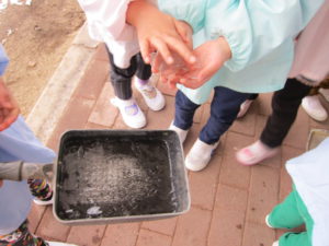 年長さんが氷屋さんになり、お友だちに分けてあげました。