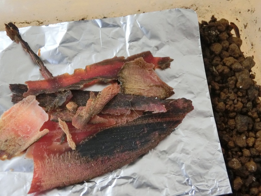 飼育箱に鈴虫用の餌・鰹節・煮干しを入れて見ました。