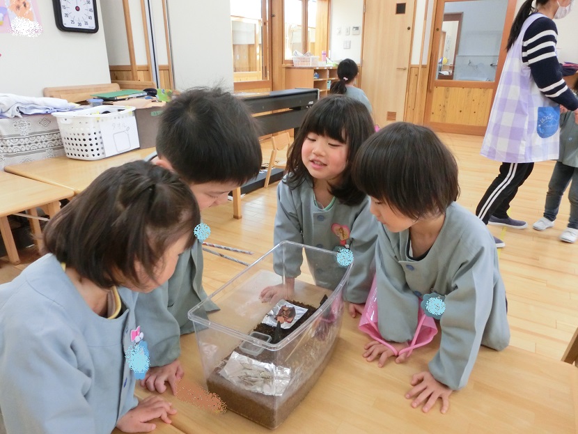 子ども達は真剣に観察する姿がありました。この時期に孵るとは思いませんでしたが、また子ども達と大切に成長を見守っていこうと思います。