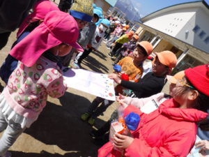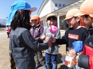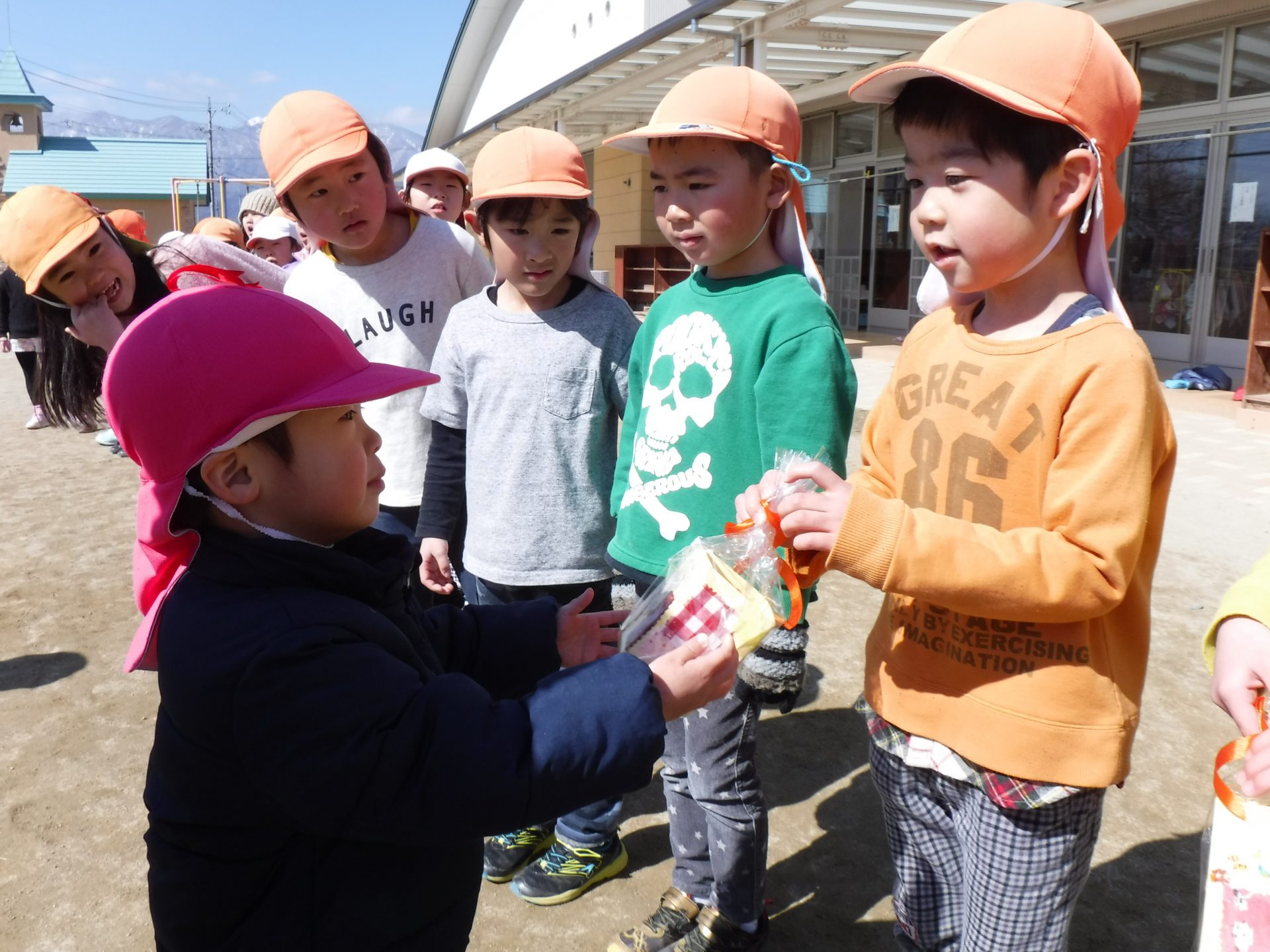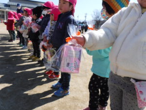 子「小学校にいっても忘れないでほしいなぁ」青空ありがとう会は大成功!年長さんからも「忘れないでね!」と素敵なプレゼントを各クラスにいただきました。