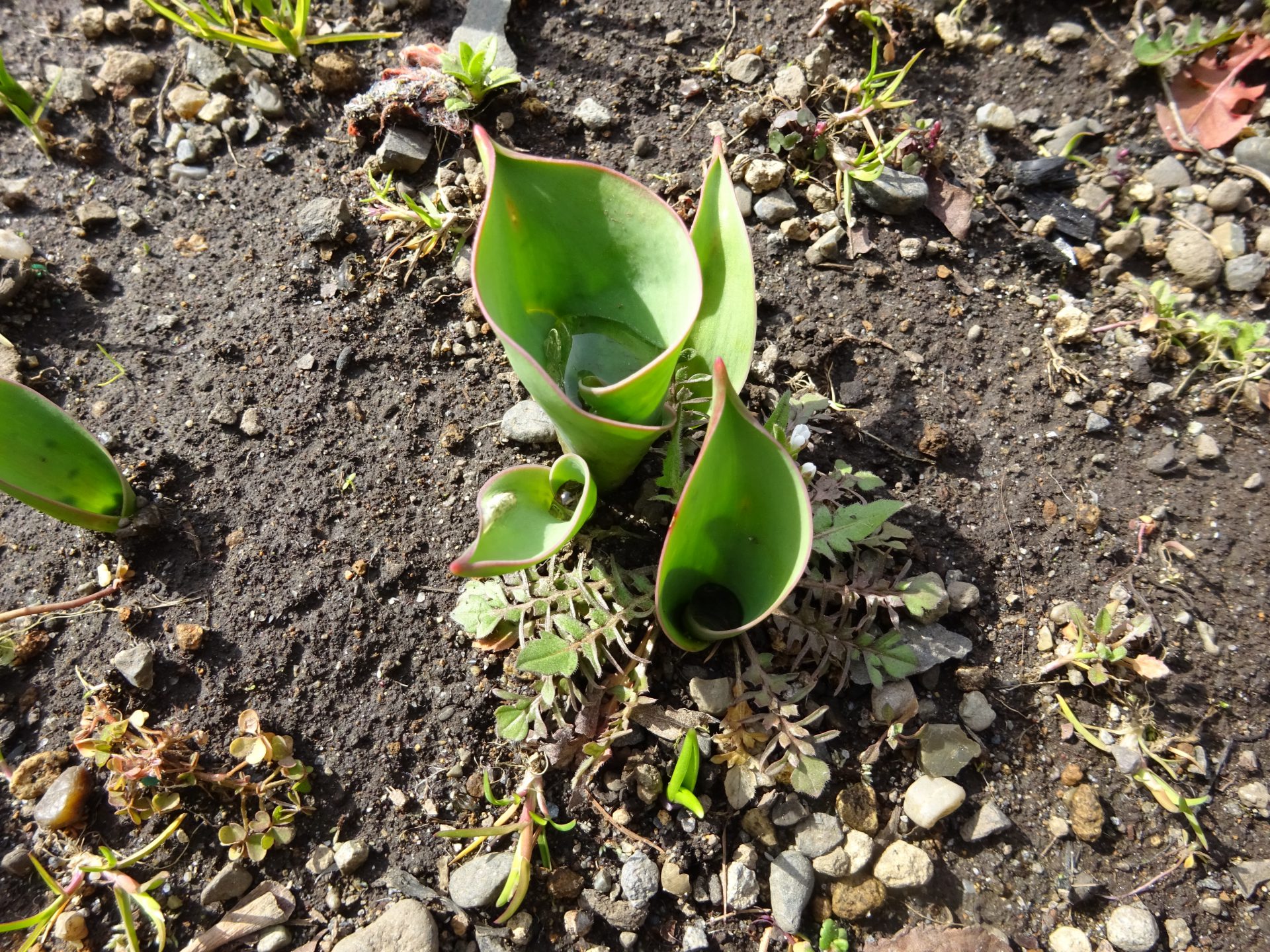 とチューリップの葉にたまる雨水を不思議そうに眺めていました。