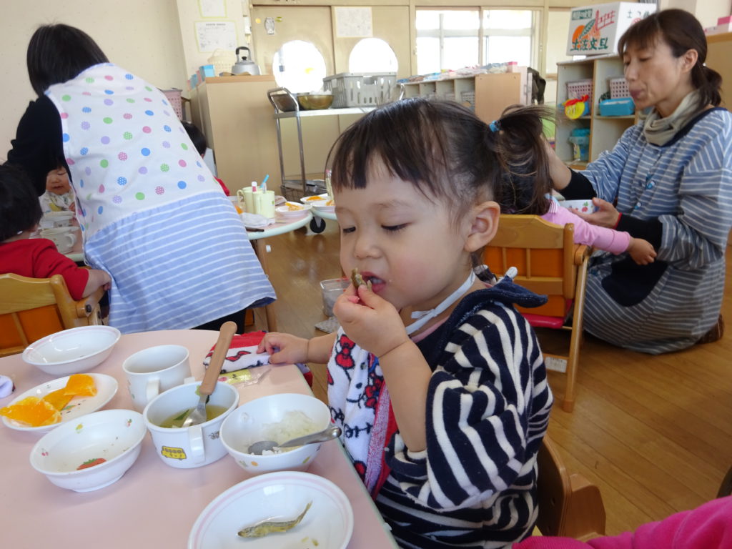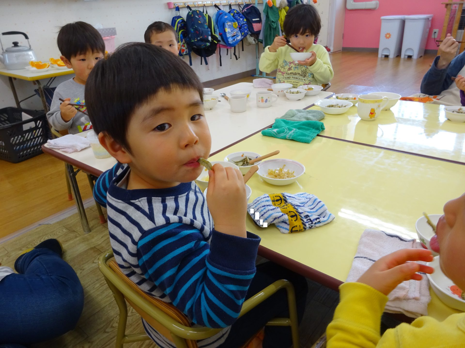 初め少しこれは何かな?と様子を見て食べていた子も、食べてみるとおいしい!とほとんどの子がよく食べてくれました。