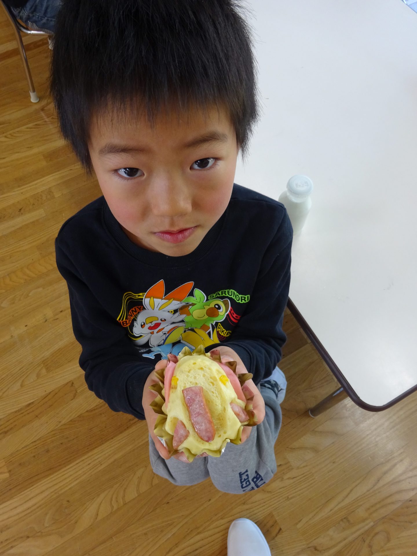 昨年の反省から、パーツの置き方を変えてみたりはしたのですが、蒸かすと膨らむのでどうしてもパーツがずれてしまい、給食の先生方にも苦心していただきました・・・。ありがとうございます。